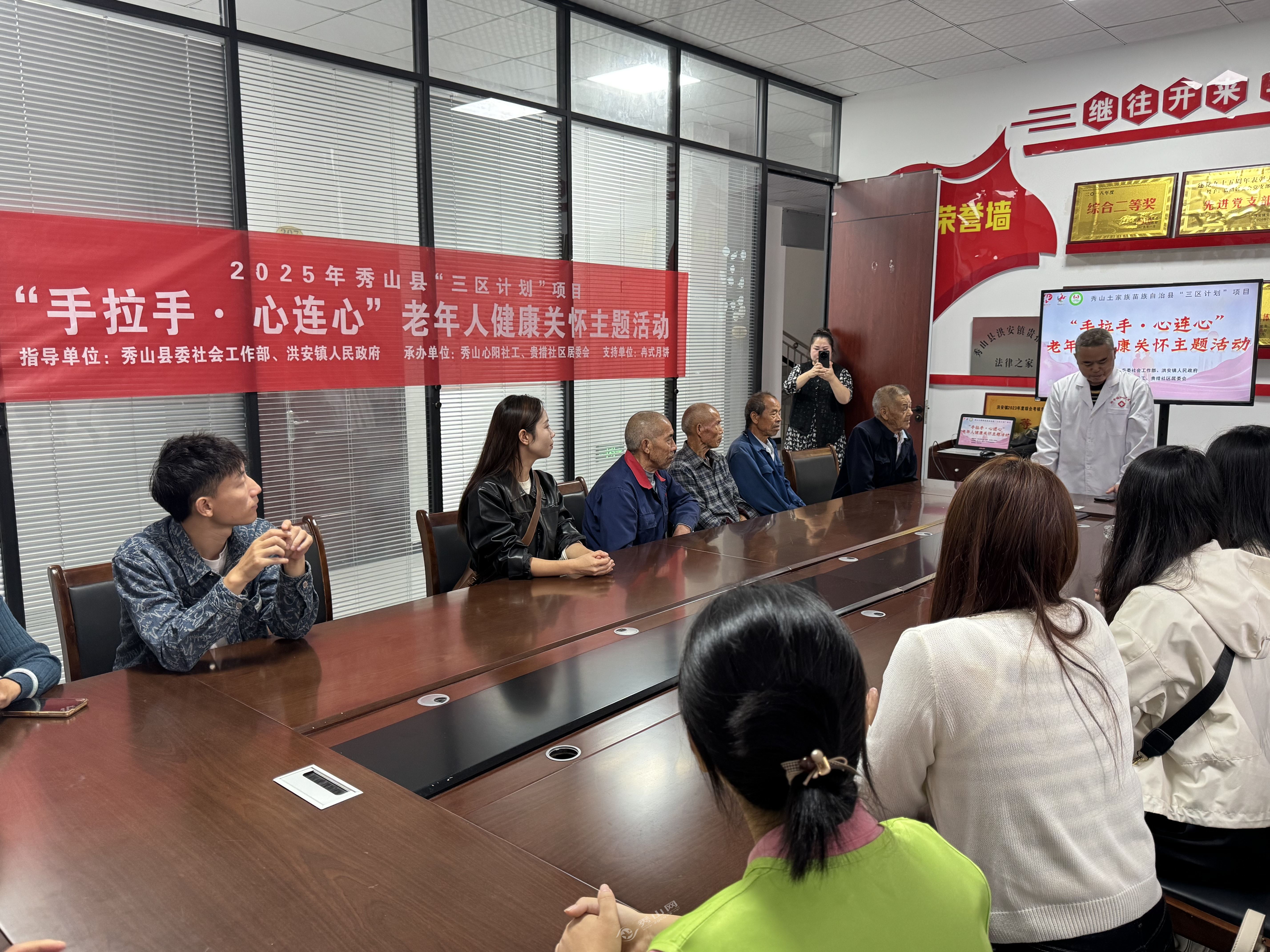 秀山网讯 9月22日,秀山县“三区计划”项目——“手拉手·心连心”老年人健康关怀主题活动在洪安镇贵措社区举行,聚焦孤寡、残疾、困境老人群体,通过集中互动与入户慰问相结合的形式,送去健康服务与暖心关怀。