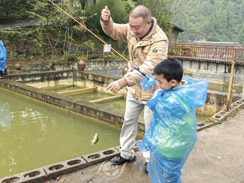 游船体验结束后,亲子家庭在乐园参与投壶、喂鱼等互动游戏,随后开展钓虾钓鱼活动。家长与孩子协作配合,收获“战利品”的同时增进情感交流。活动最后,全体家庭共享地道农家美食,为此次活动画上圆满句号。