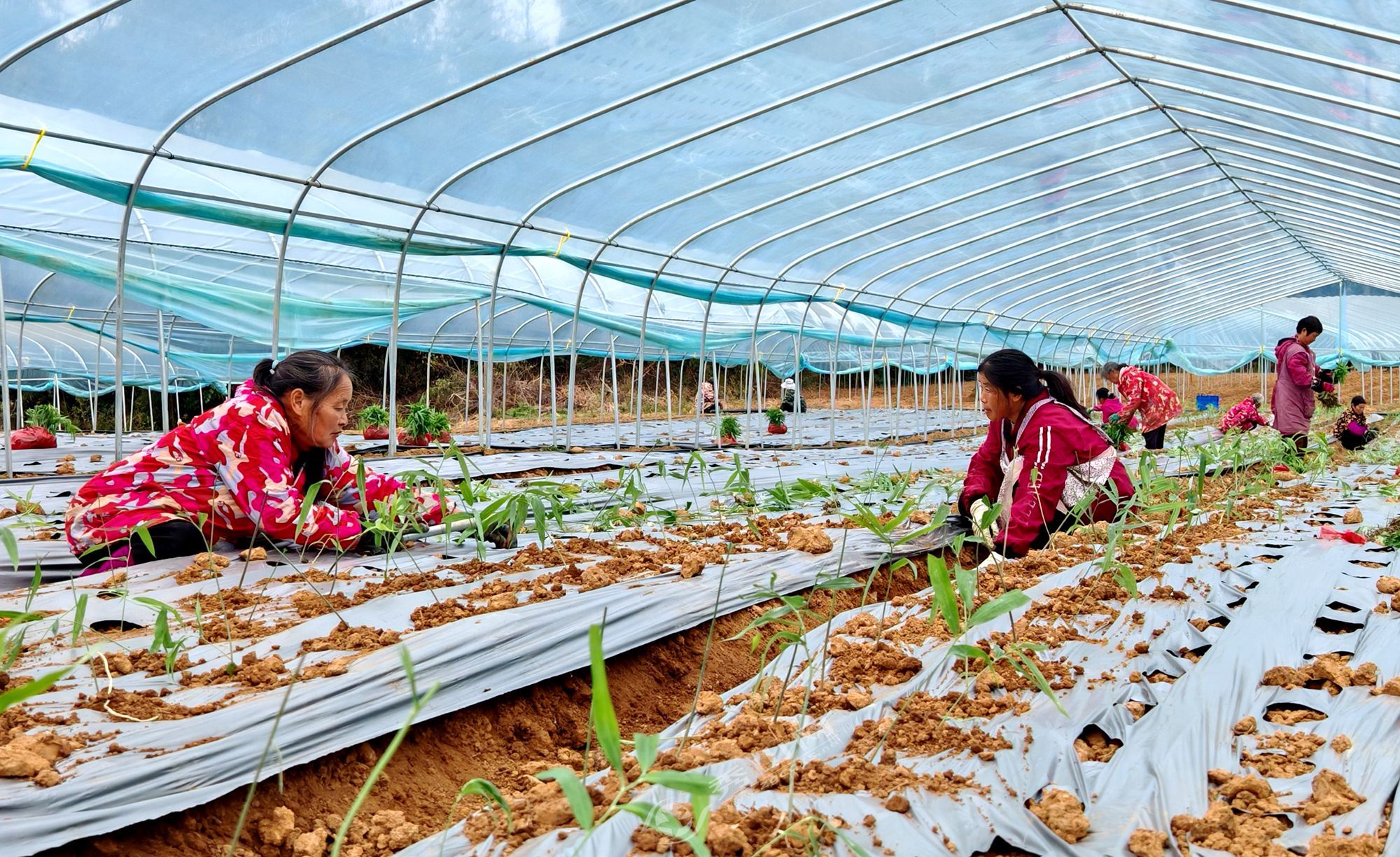 近段时间的持续晴好天气为秋冬种提供了有利条件。12月18日,记者在兴隆坳农业园区黄精大棚标准化种植基地看到,数十名工人分工协作,开厢、起垅、覆膜,在水肥一体化项目加持下,栽植黄精幼苗。