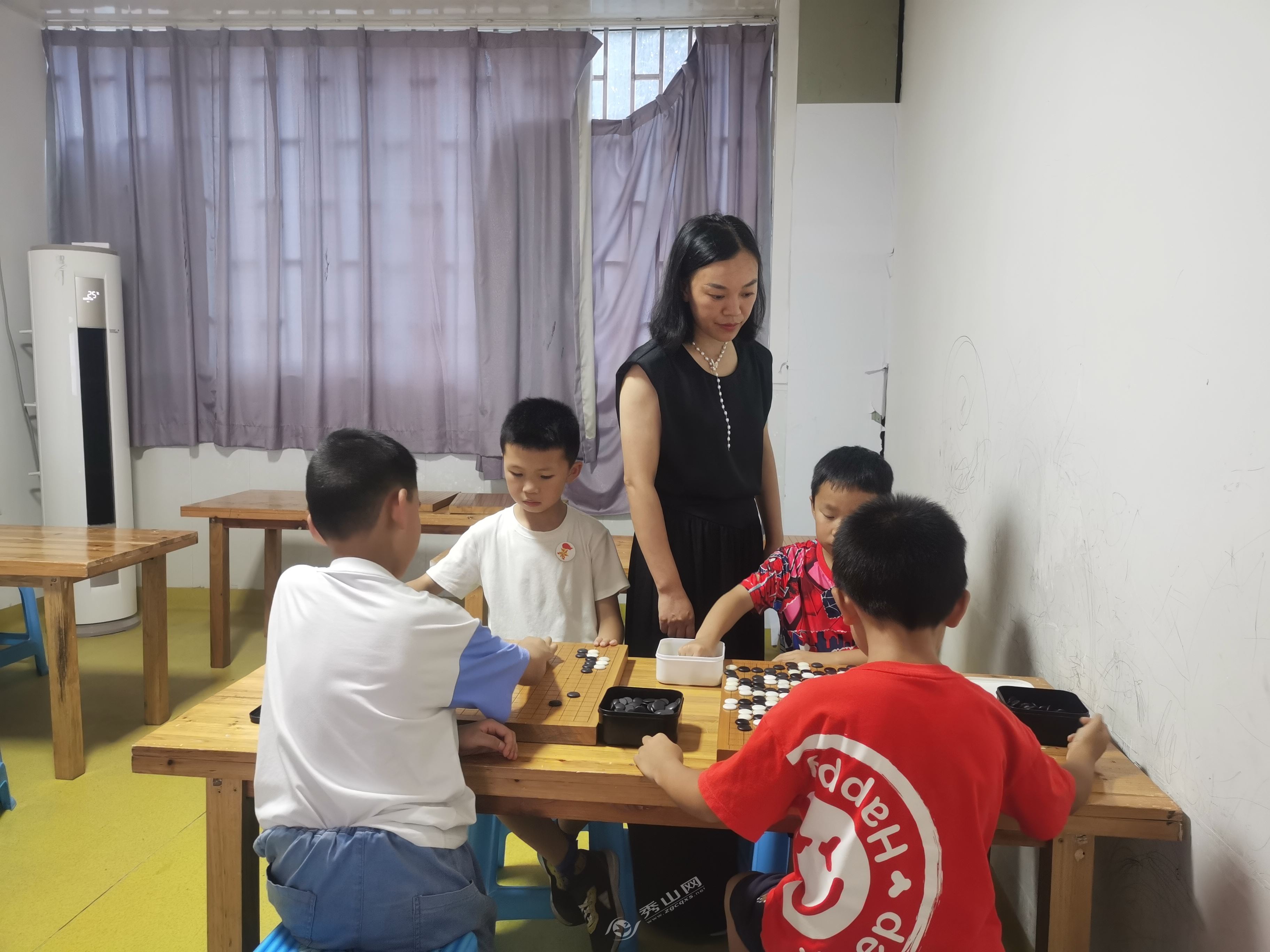 秀山网讯 2025年6月19日,在秀山边城棋院教室里,棋枰铺展,孩子们稚嫩的手指拈起黑白棋子,眉宇间凝结着超越年龄的专注。一个身影在棋桌间无声穿行,时而驻足凝视,时而俯身轻语——她就是陈秀芬,秀山县政协委员、秀山边城棋院院长,更是孩子们心中那位将古老棋艺化为智慧源泉的引路人。这方寸棋枰,正是她倾注心血拓展的育人天地。
