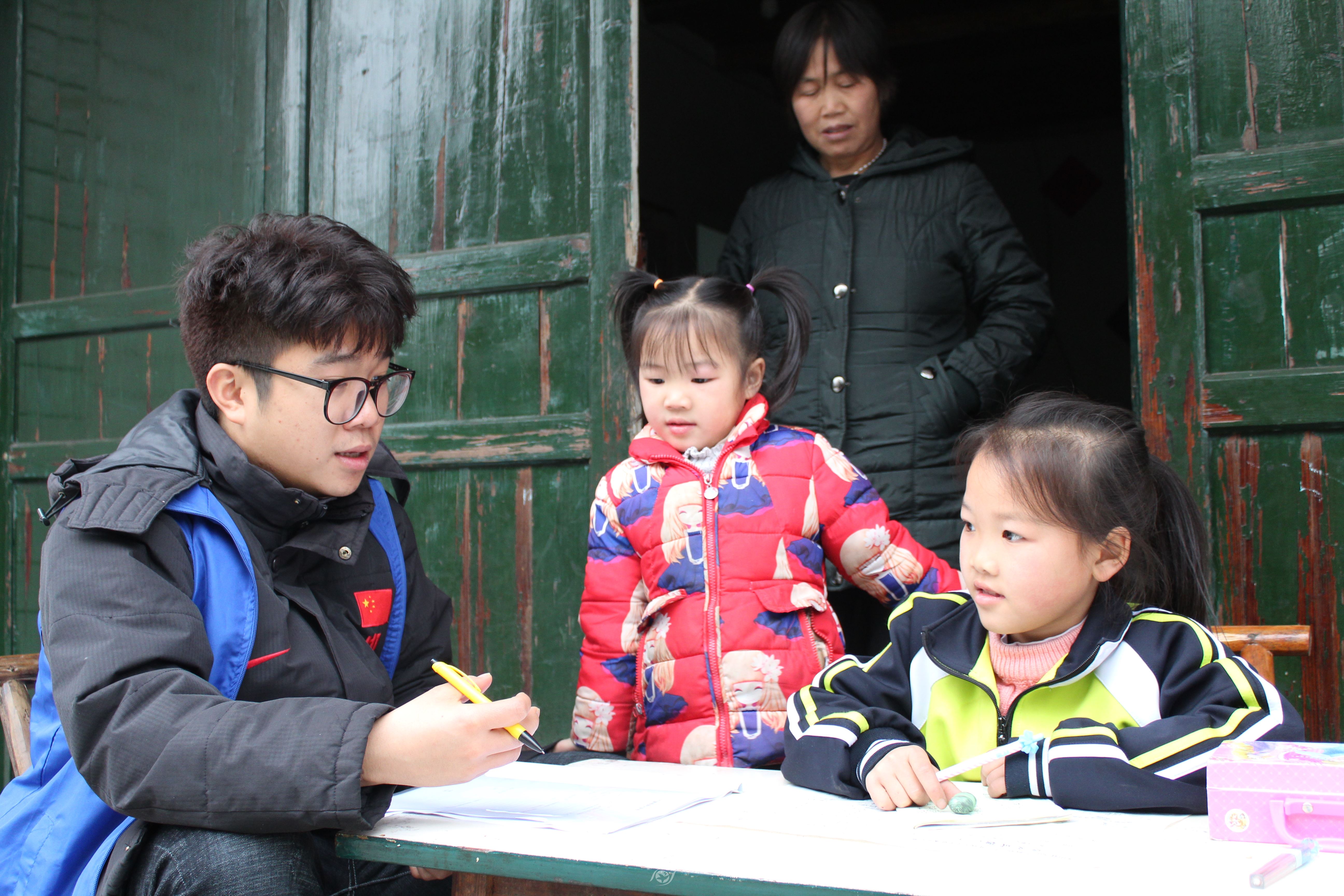 孟晓轲入户为留守儿童进行课业辅导