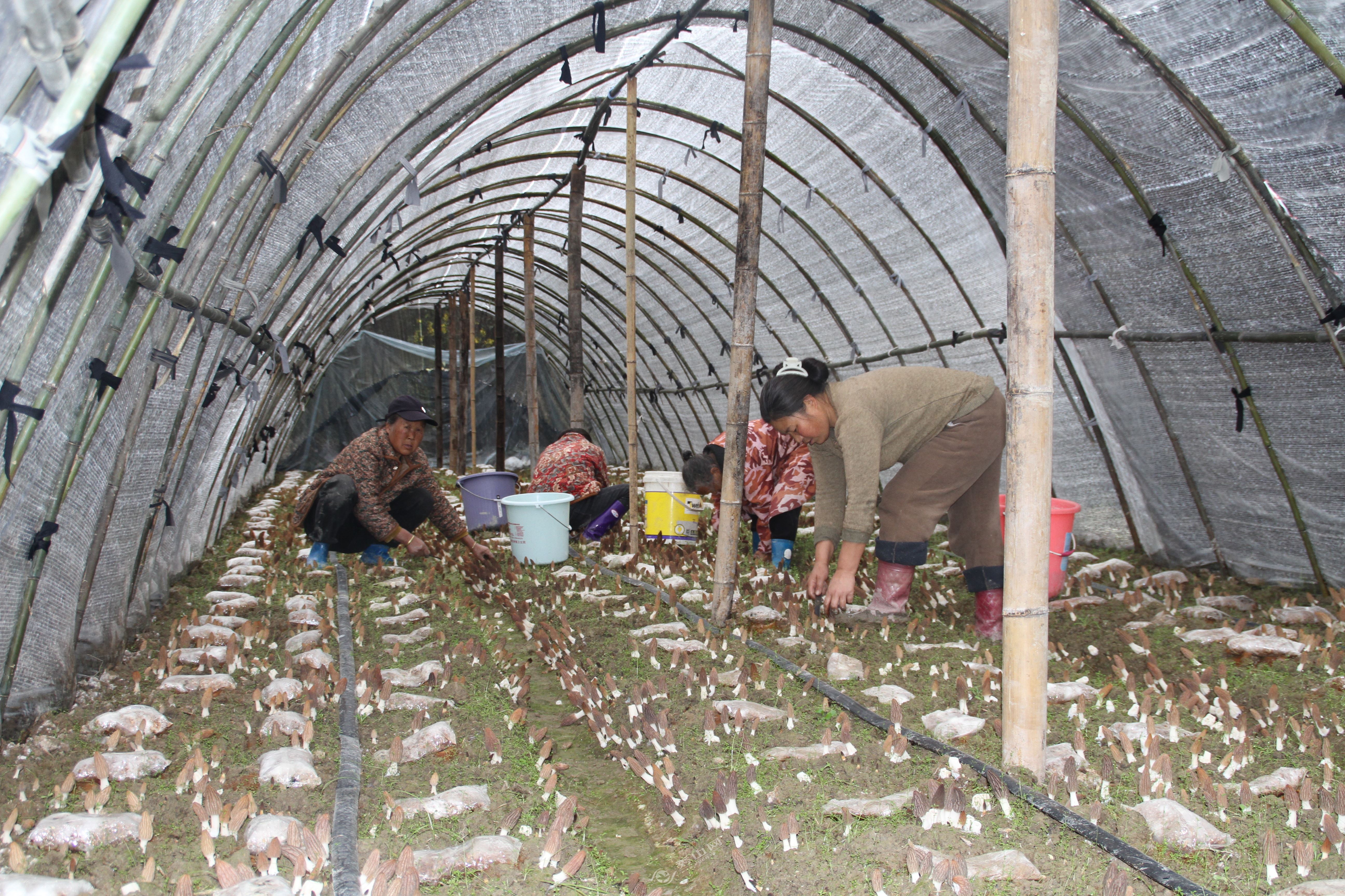 “每天都来采菌,一天能挣60块,家门口就能就业!”正在大棚里忙碌的村民笑着说。据了解,当前正值羊肚菌采收旺季,当地每天用工量达500人左右,大量农村闲置劳动力实现了“足不出镇”增收。