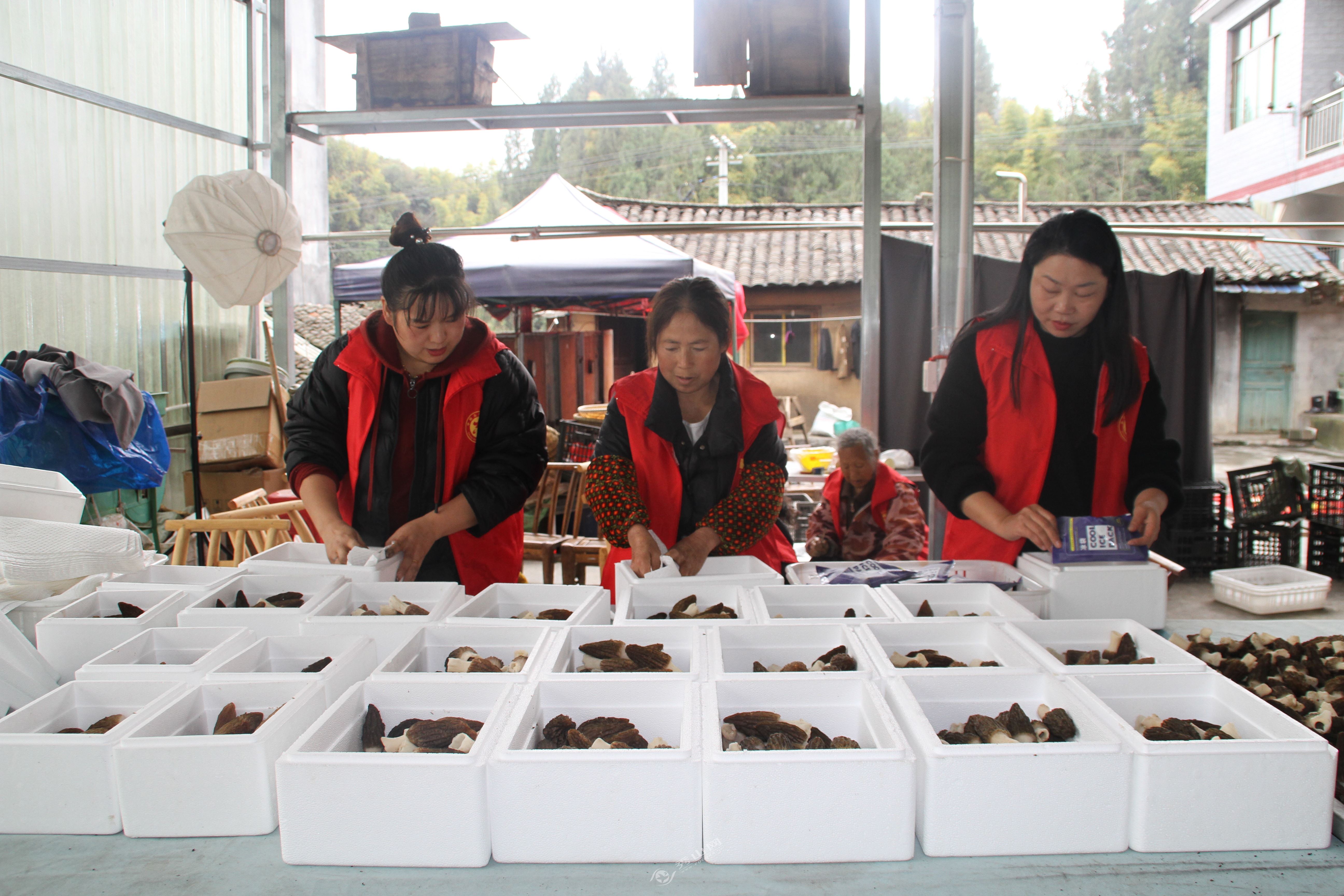 为让这份“山珍”卖出好价钱,兰桥镇打破传统销售瓶颈,将直播间搬进种植大棚。主播对着镜头展示新鲜采摘的羊肚菌,介绍其烹饪方法与营养价值,订单实时滚动,从田间到餐桌的“高速通道”瞬间打通。“线上订单量激增,我们得抓紧打包,确保菌子以最新鲜的状态发往全国各地。”种植大户黄明江介绍。