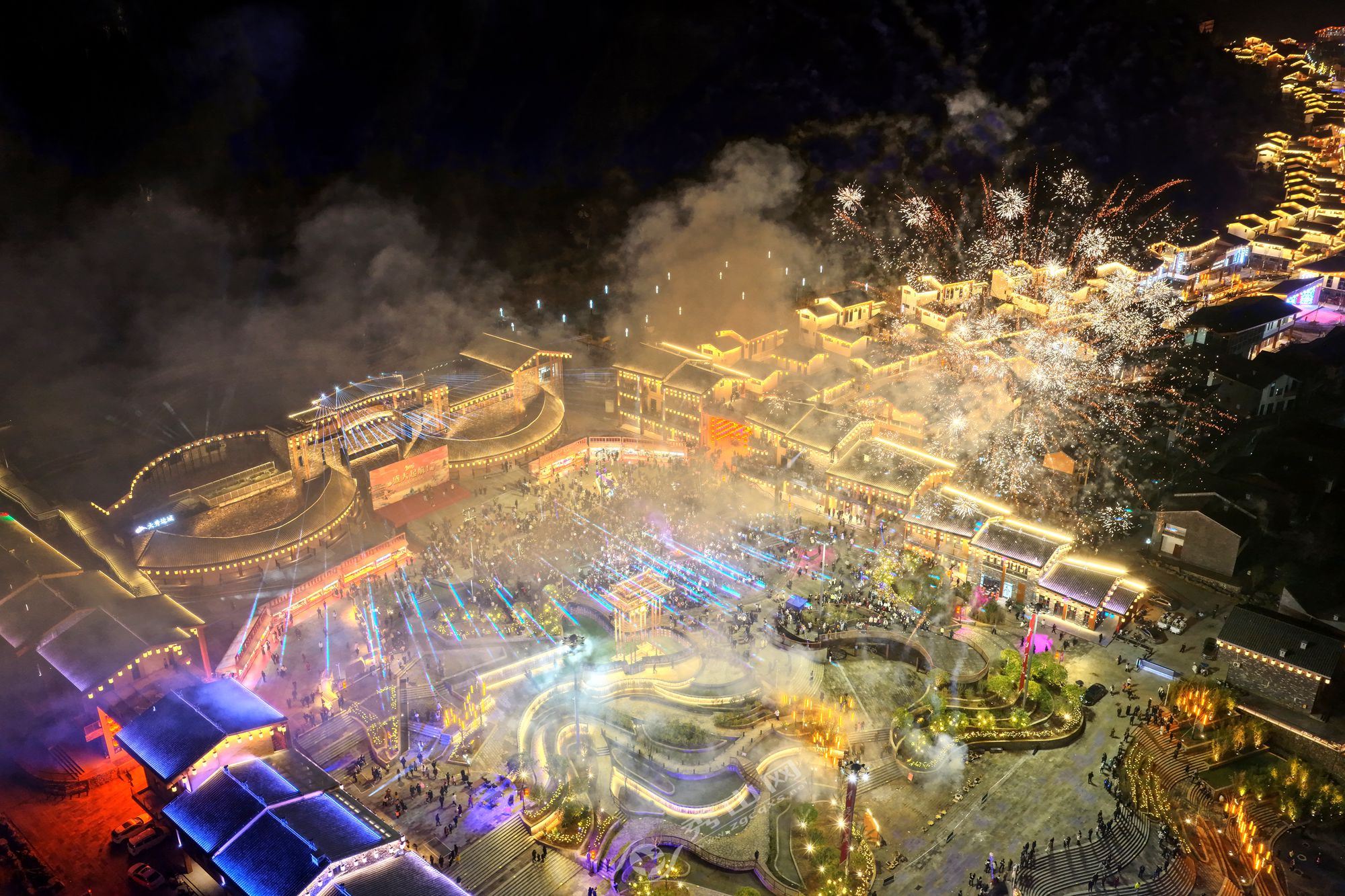 依托《边城》文化IP和“一脚踏三省”区位优势,秀山创新打造“不夜边城 秀山有戏”沉浸式文旅项目,将渝、湘、黔三省民俗风情有机融合,通过戏剧演绎、歌舞表演等方式,结合声光电效果为游客提供创新多元的消费场景。一道道年味十足的“文旅大餐”,吸引八方游客纷至沓来,共度欢乐祥和中国年。