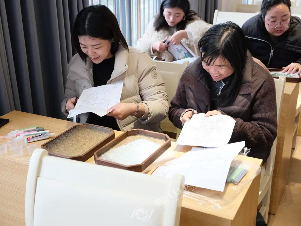 在“巾帼暖心微课堂”环节,县妇联邀请了相关领域专业人士,围绕家庭教育等内容进行深入浅出的讲解,为现场妇女姐妹送上了一份实用的“知识礼包”,课堂内容贴近生活、干货满满,大家认真听、积极互动,纷纷表示受益匪浅。随后,活动进入“雅韵匠心·非遗掐丝珐琅茶盘手工体验”环节,在老师的指导下,姐妹们亲手体验了掐丝、点蓝等传统技艺,感受非遗文化的独特魅力。大家专注创作,交流心得,在指尖流转中释放压力,在匠心独运中陶冶情操,现场欢声笑语不断。