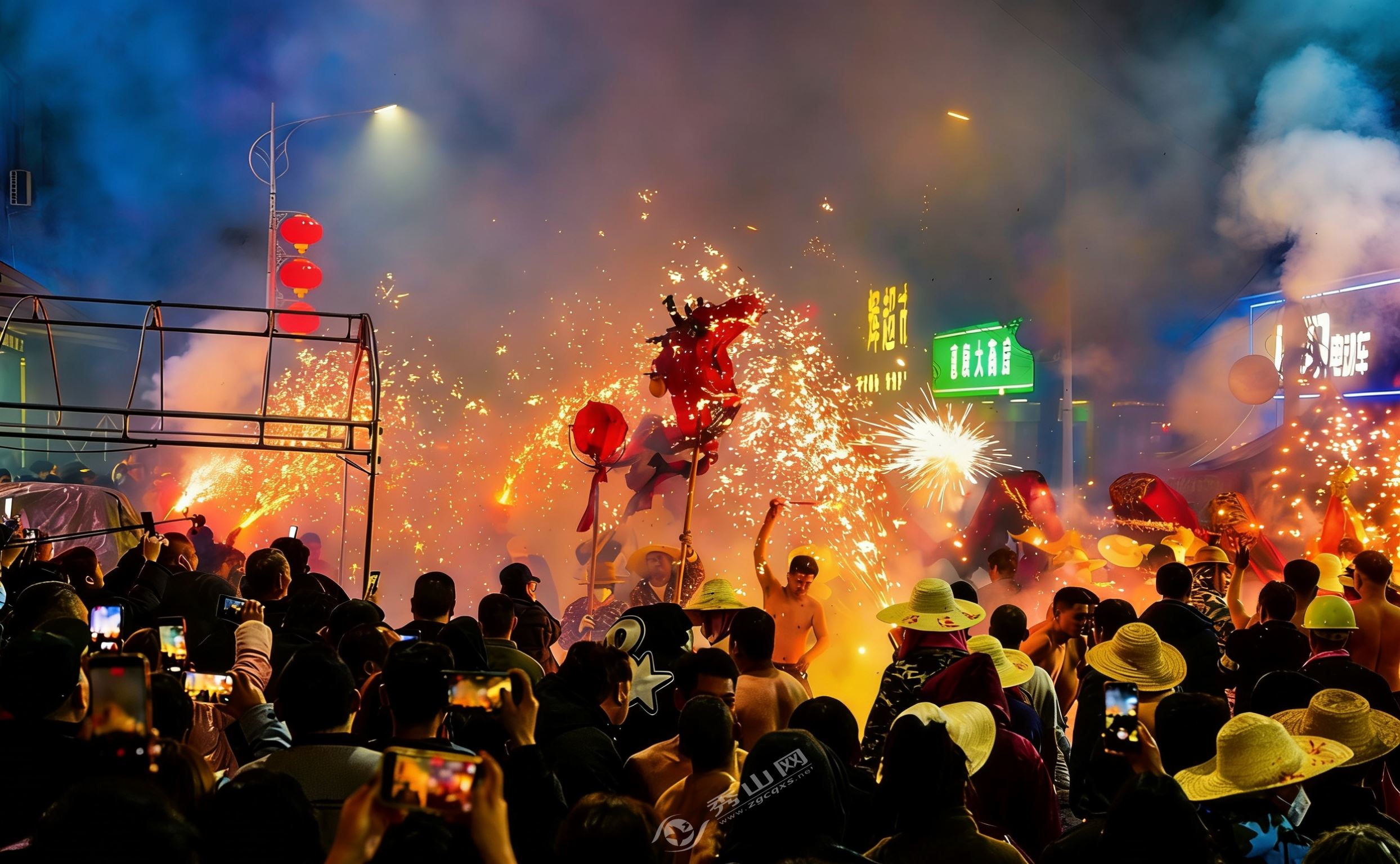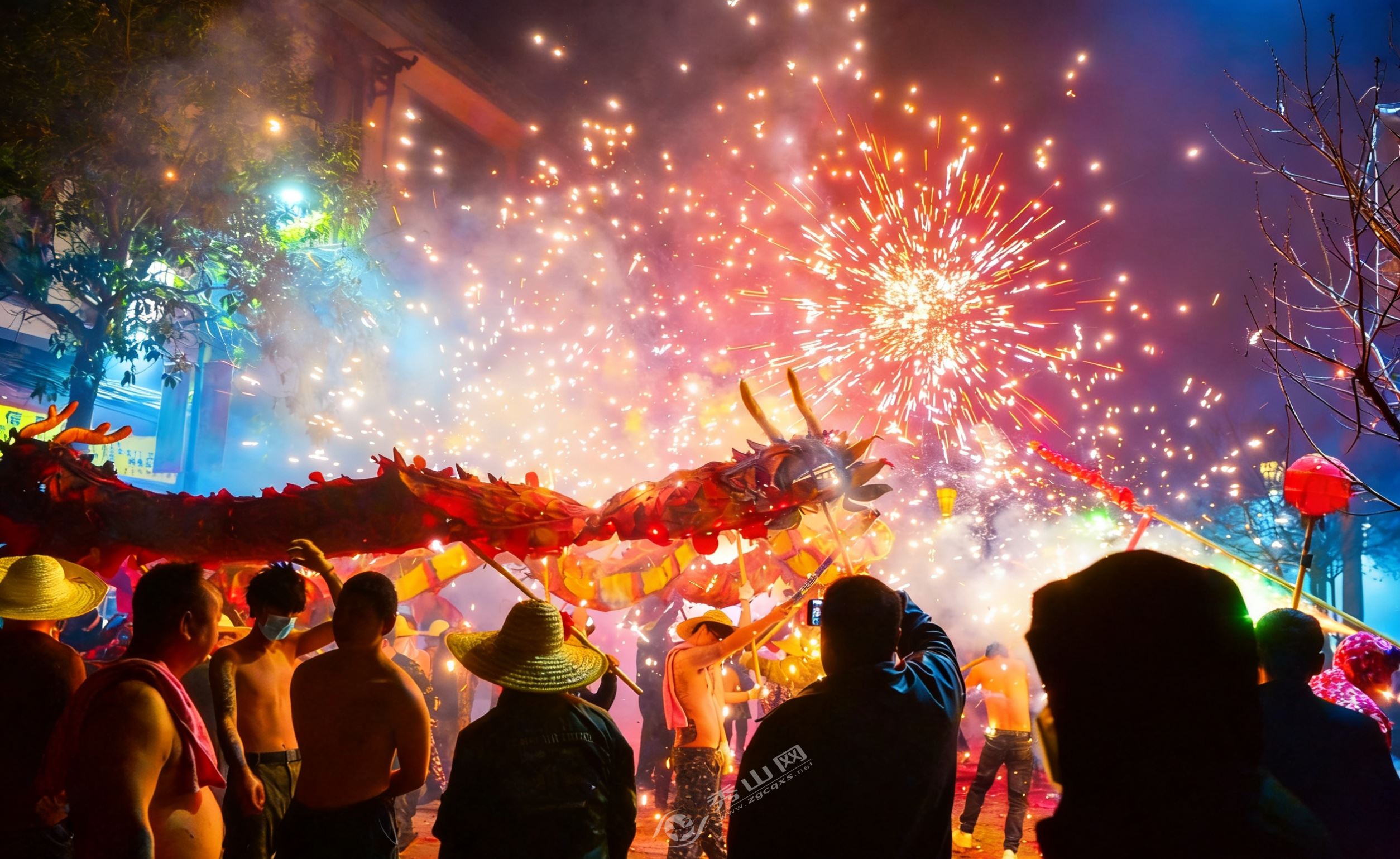 当晚,记者在现场看到,来自邑中、财塘等村(社区)的8条彩龙沿着集镇主干道蜿蜒游走,舞龙者赤膊上阵,豪迈不羁,在沿街商铺和居民家门口前穿梭舞动。热情高涨的群众和商户手持缠满鞭炮的竹竿,待龙灯临近便点燃火炮,火光四溅间,龙灯追炮火而行,群众亦随龙灯欢呼前行,锣鼓声、爆炸声、欢呼声交织回荡,响彻街巷。