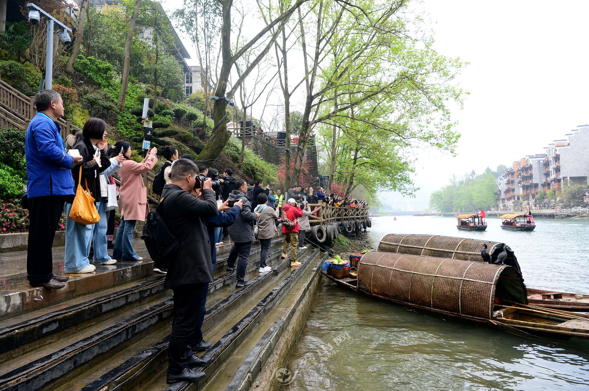 在洪安古镇,摄影家们驻足观看大型沉浸式情景剧《遇见边城》,该剧目巧妙融合秀山本土民歌、土家婚俗等非遗文化元素,既生动再现了沈从文笔下文学边城的浪漫故事,也深情演绎了当地的红色历史记忆。清水江畔错落有致的吊脚楼、江面上光影摇曳的拉拉渡、古朴的街巷与浓郁的人文气息,在摄影师的镜头下交织成一幅充满诗意与乡愁的边城美景,让大家在拍摄中感受边城的独特魅力。宁夏摄影家协会副秘书长孟洁洁坦言,第一次来到秀山边城便被这里的景致打动,景区拍摄出片效果极佳,浓郁的民族特色、丰富的特色美食与山清水秀的自然风光,都值得深入探索与用心记录。