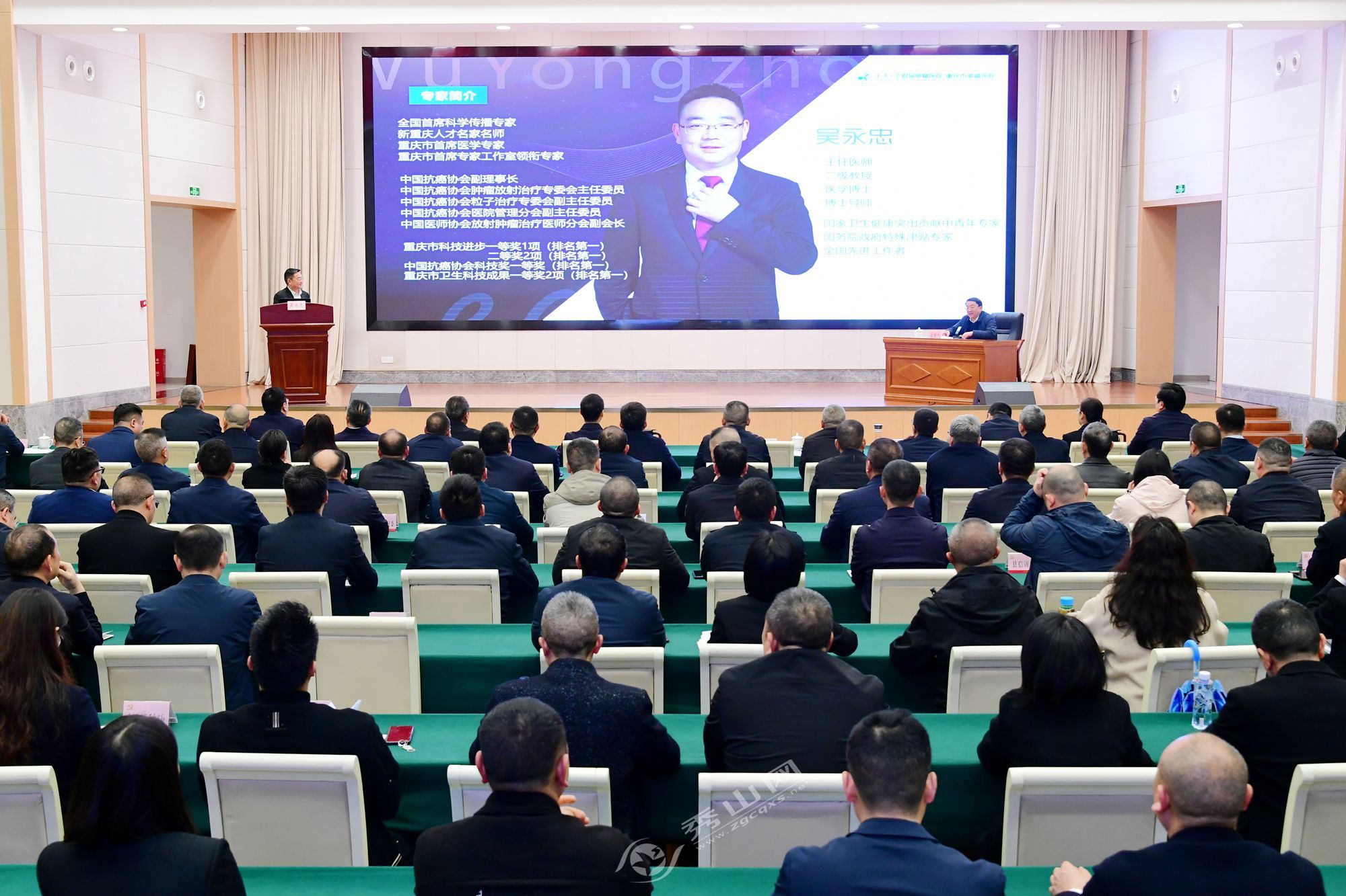 讲座特邀重庆大学附属肿瘤医院党委书记、主任医师吴永忠,重庆大学附属肿瘤医院健康体检与肿瘤筛查中心主任赵玉兰两位专家现场授课。