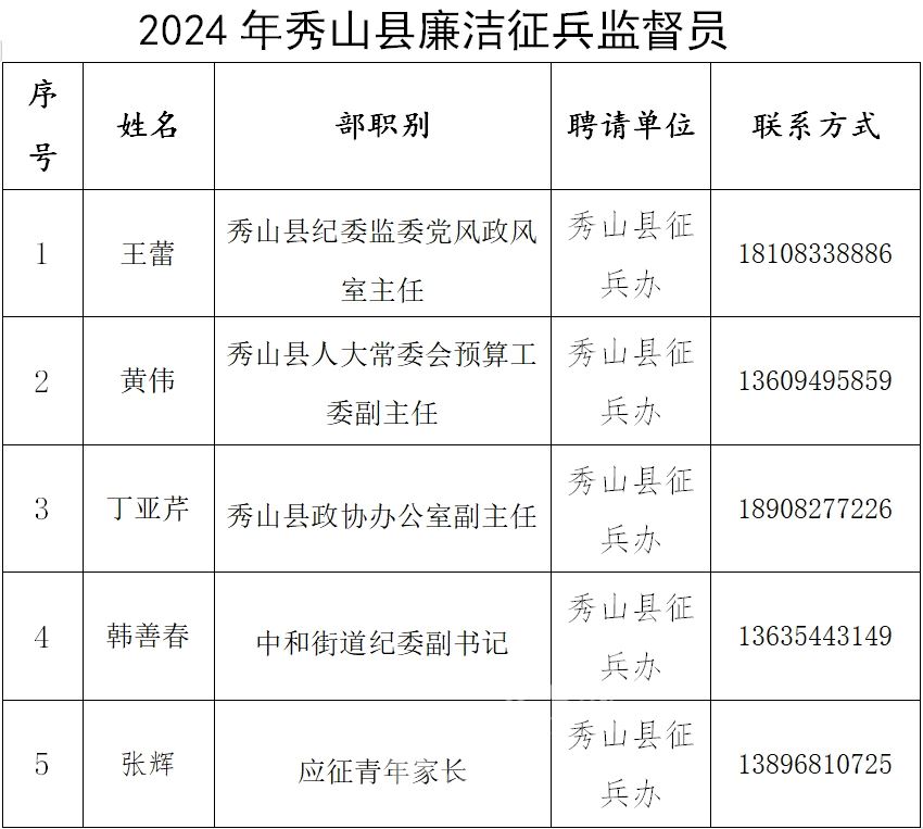 秀山县人民政府征兵办监督举报电话:023—87984814