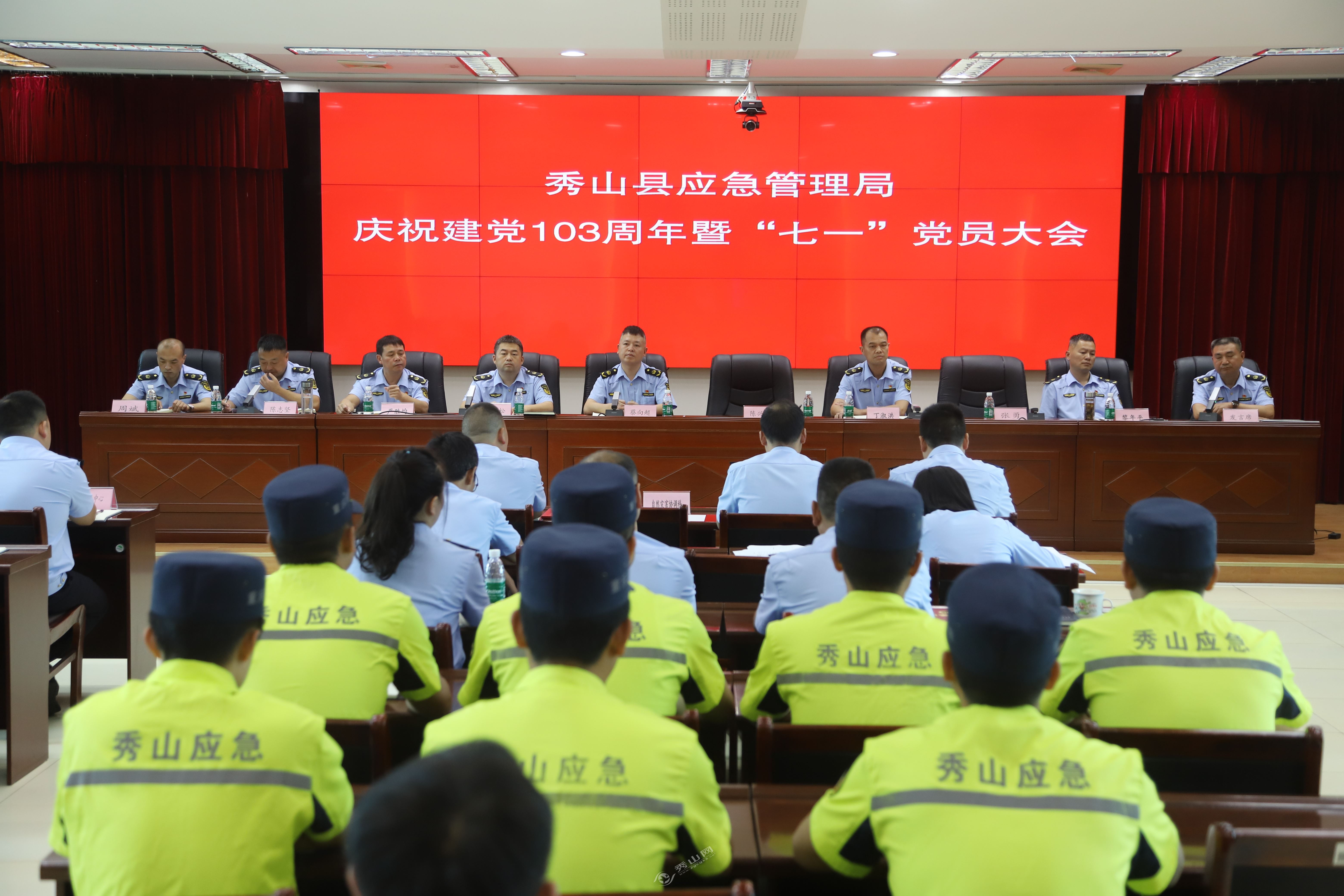 秀山网讯 6月28日下午,县应急管理局党委组织召开庆祝建党103周年“七一”表彰大会,进一步动员广大党员干部铭记历史、不忘初心、砥砺前行、团结拼搏,把思想统一起来,把力量凝聚起来,把干劲鼓舞起来,保障全县经济社会更好更快发展。该局机关全体党员干部、应急救援支队党员参加会议。