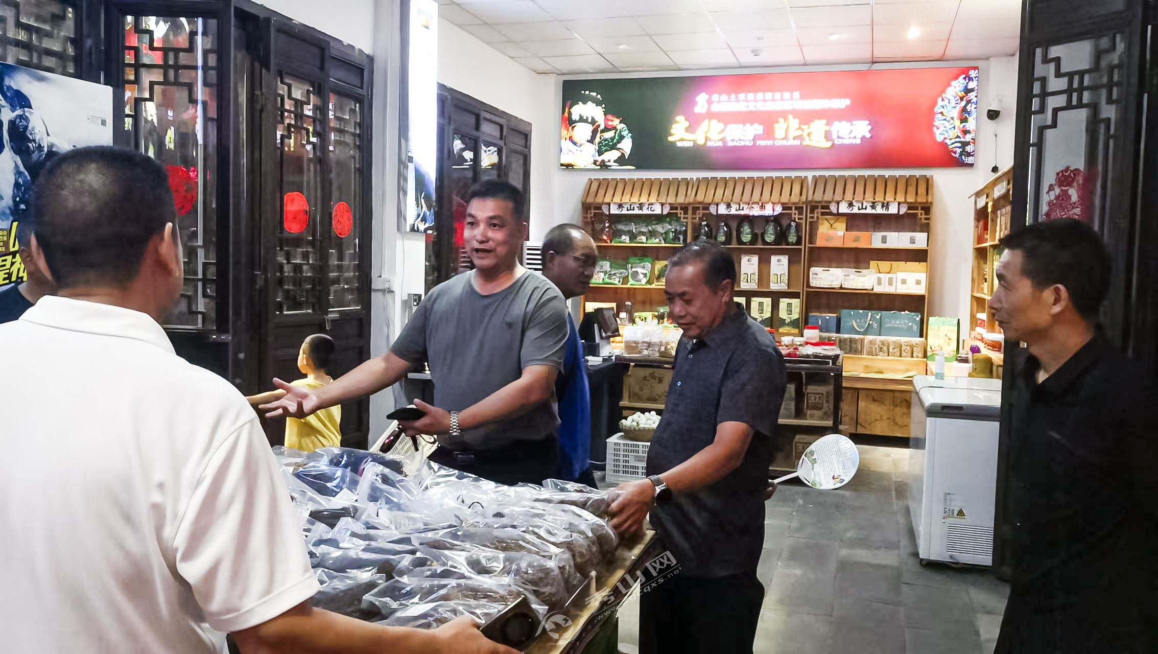 夜幕降临,西街旅游休闲街区热闹非凡,烟火气十足。调研组与秀山非遗体验馆负责人、顾客深入交流。