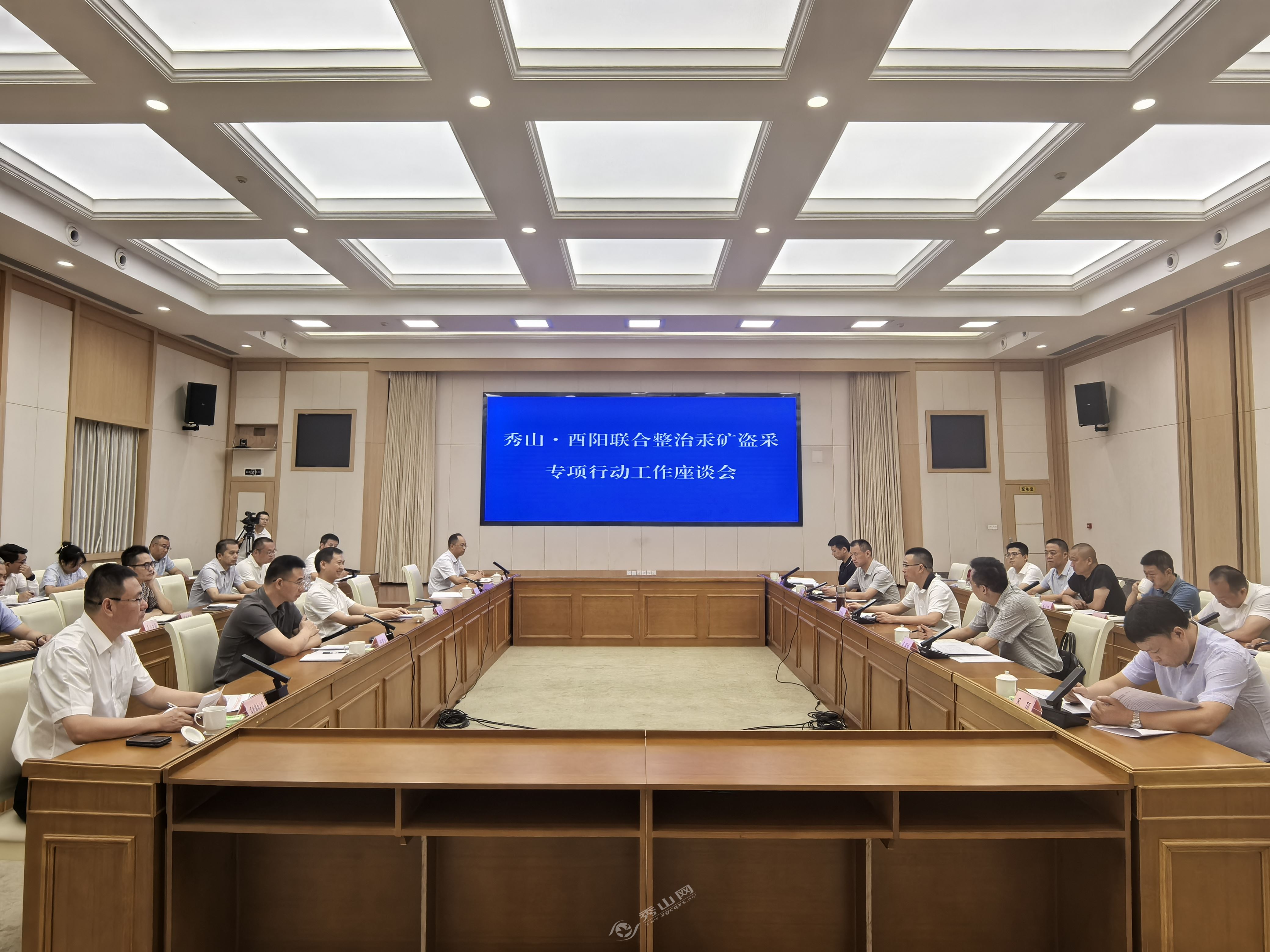 秀山网讯 8月26日上午,秀山·酉阳联合整治汞矿盗采专项行动工作座谈会召开。秀山县委副书记、县长谭雪峰,酉阳县委副书记、县长杨通胜参加会议。