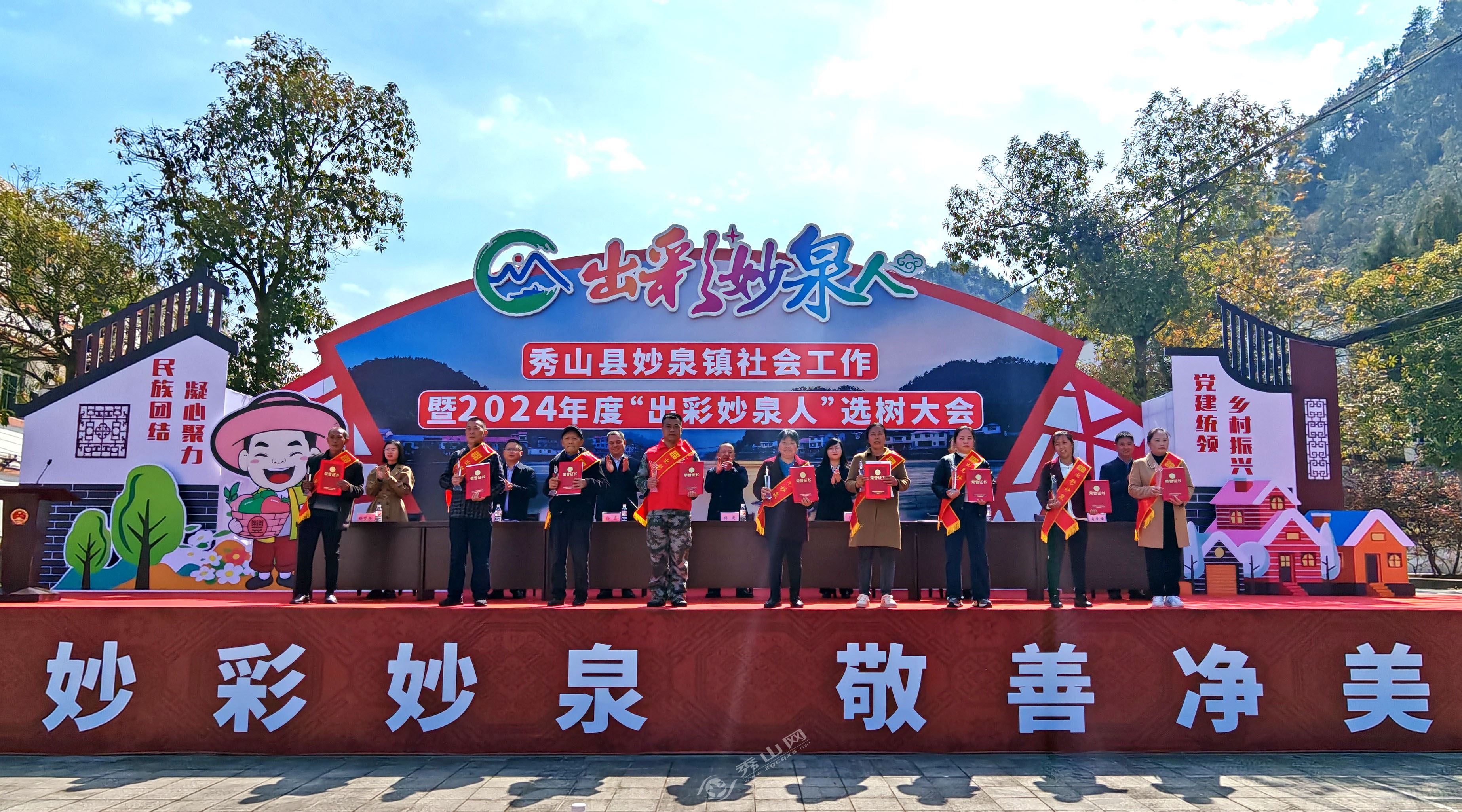 秀山网讯 3月19日下午,秀山县妙泉镇文化广场上涌动着融融暖意,妙泉镇社会工作暨2024年度“出彩妙泉人”选树大会举行,选树的9名“出彩妙泉人”为妙泉镇树立了新时代道德标杆。