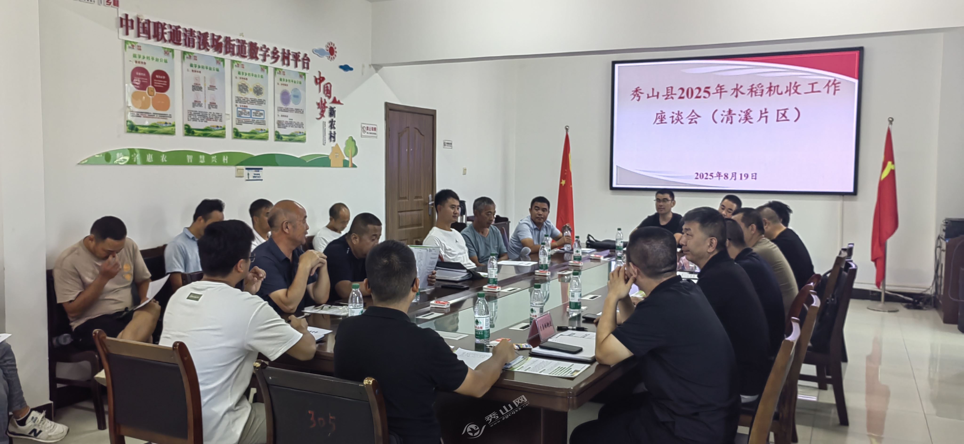 秀山网讯 8月19日,秀山县2025年水稻机收工作座谈会(清溪片区)在清溪场街道召开。粮油规模种植大户代表聚焦水稻机收关键环节,共同研究部署相关工作。