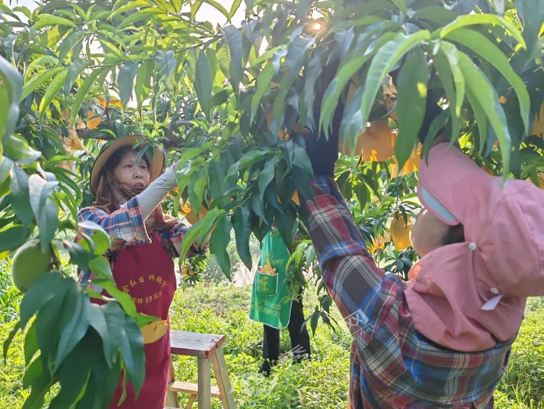 走进果园,满树套袋的黄桃格外显眼。“龙凤村生态好,但黄桃病虫害多。”付维刚拿起一个套袋果实解释,“套袋后,果子既躲得了病虫害、防得住鸟啄,果面还光洁,颜色也均匀,摘下来个个果形周正、金黄脆甜。”