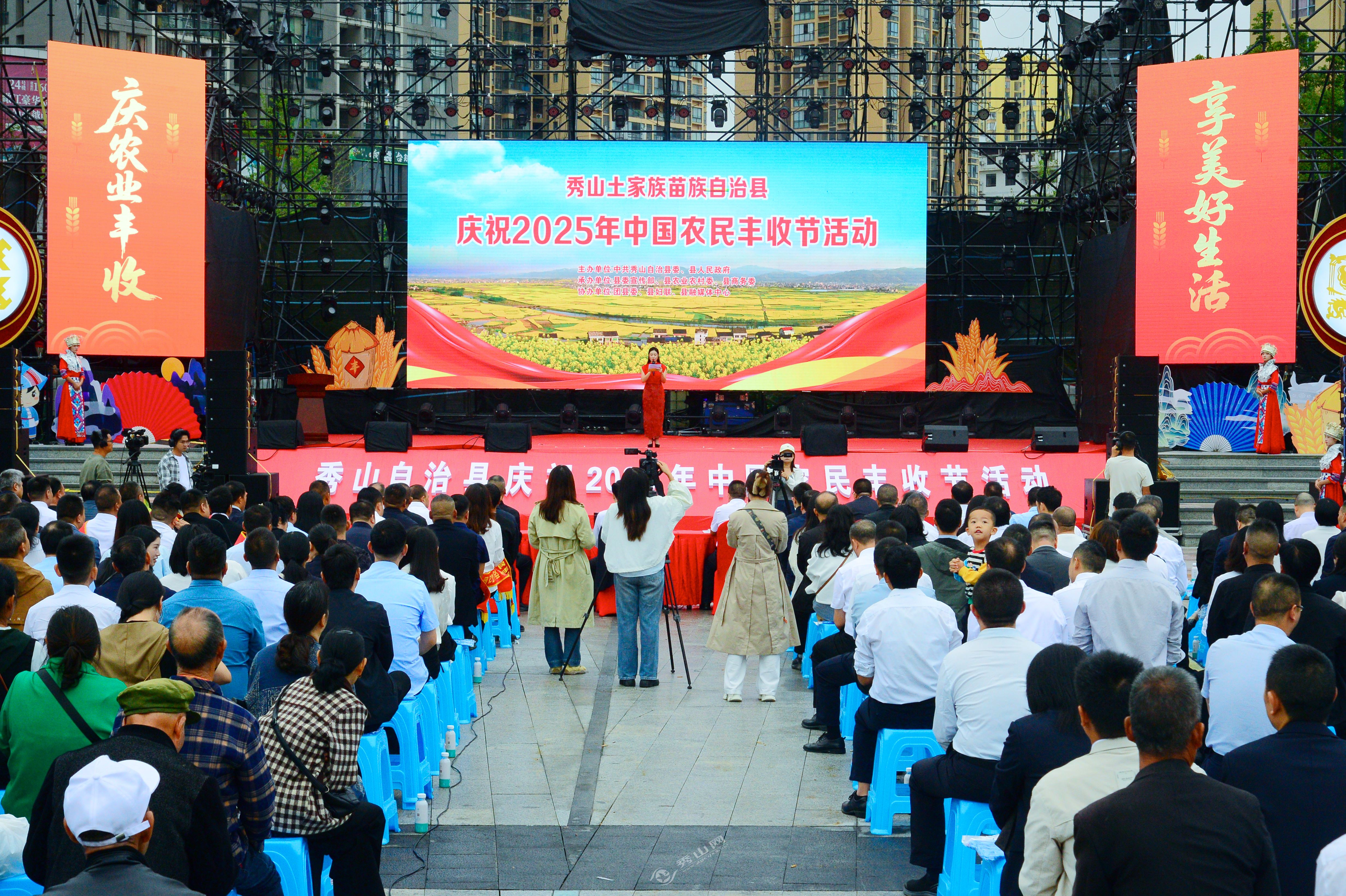 秀山网讯 9月23日上午,由秀山县委、县政府主办的“庆农业丰收享美好生活”2025年中国农民丰收节庆祝活动在花灯广场举行。县委副书记黎中华,县领导向照勇、陈茂、吴勇、董秀义出席活动开幕式。