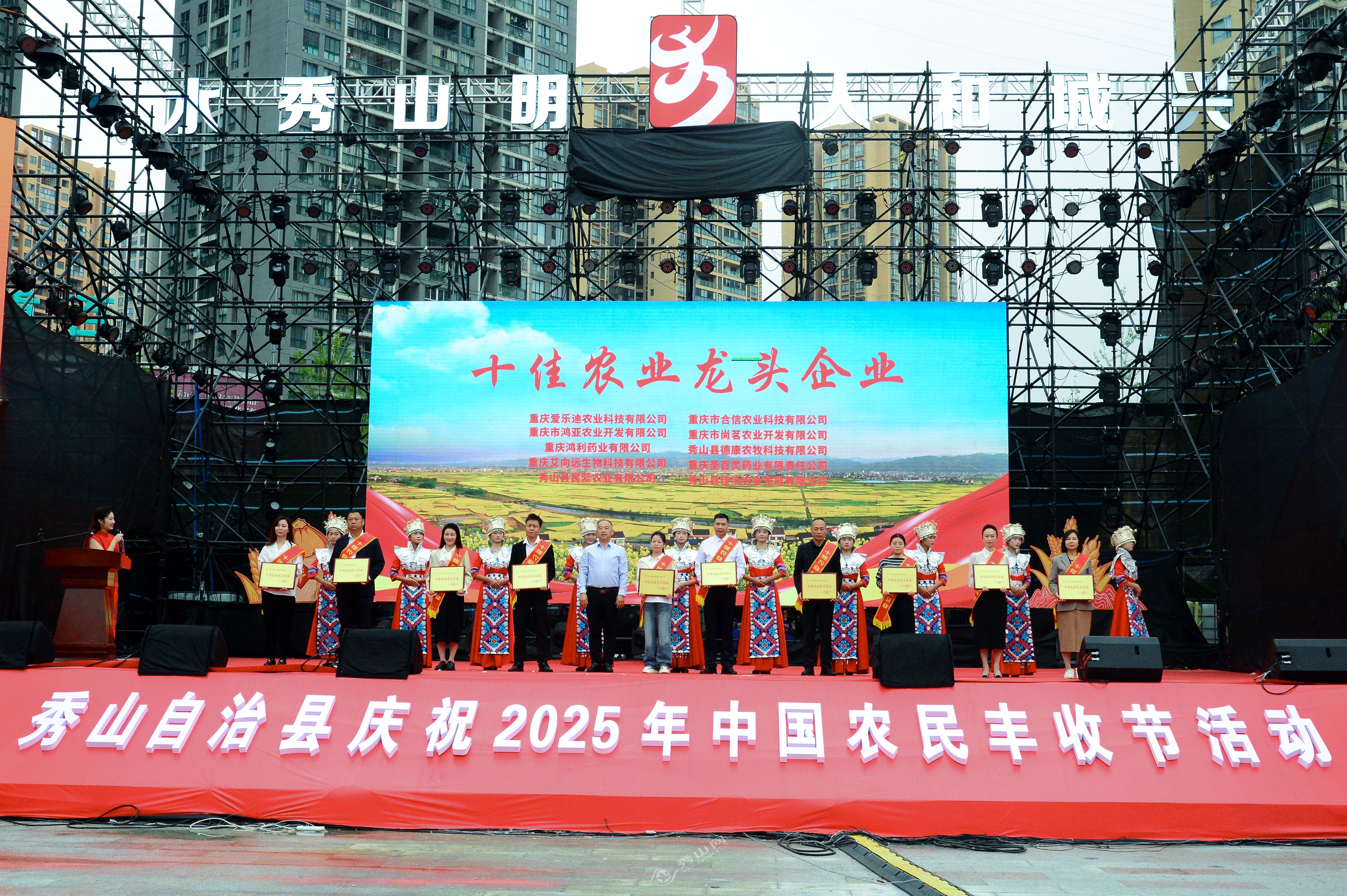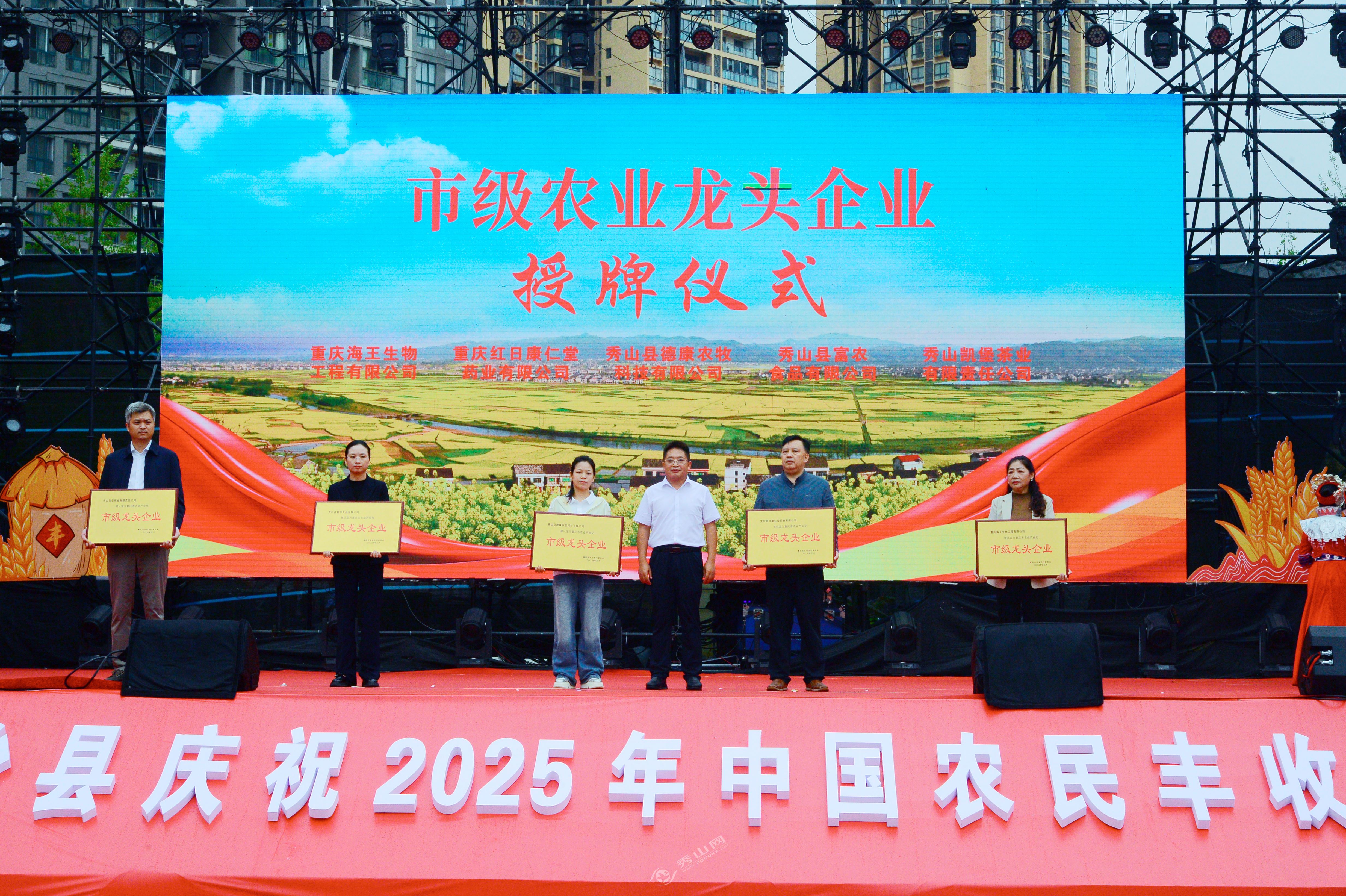 活动还对重庆海王生物工程有限公司、重庆红日康仁堂药业有限公司、秀山县德康农牧科技有限公司、秀山县富农食品有限公司、秀山凯堡茶业有限责任公司5家市级农业龙头企业集中授牌;对10名2025年度优秀致富带头人、十佳农业龙头企业、十佳农产品进行了颁奖表扬。