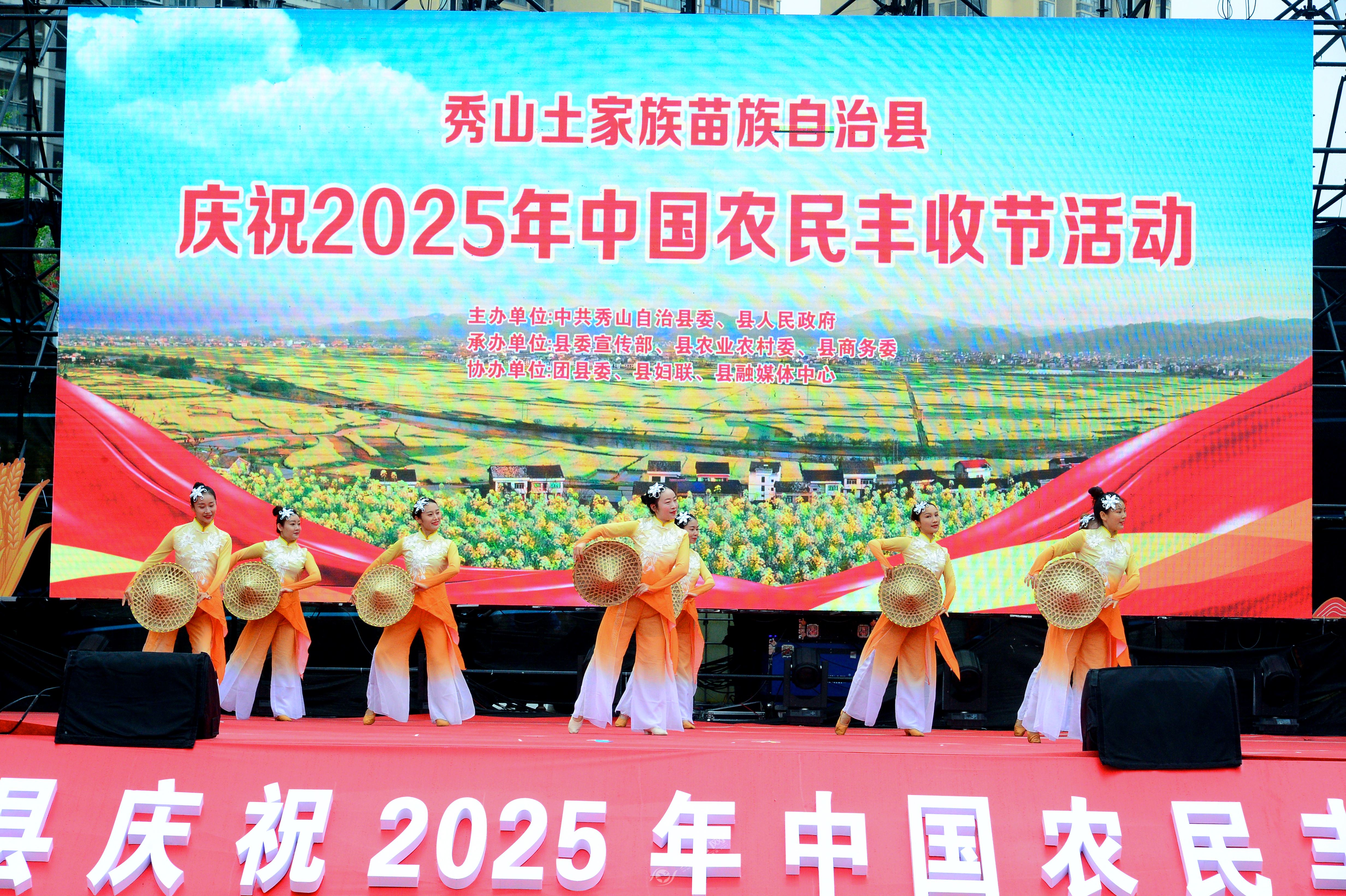 上午九点,活动在《风吹麦浪》《在希望的田野上》两首歌曲中拉开帷幕。县政府副县长陈茂致辞,向辛勤耕耘的广大农民朋友致以诚挚的节日问候;县委副书记黎中华宣布秀山县庆祝2025年中国农民丰收节活动开幕。