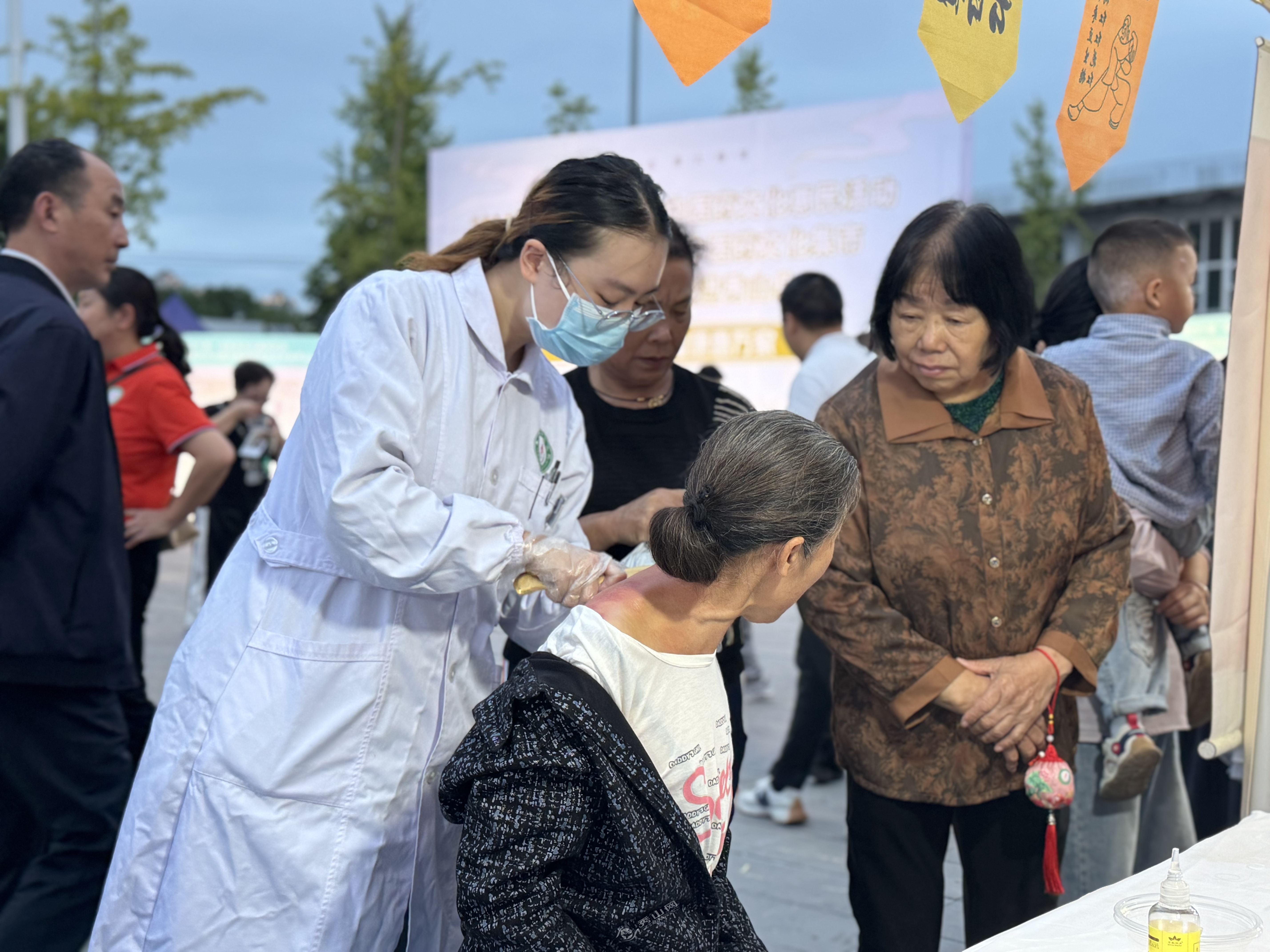 现场人气十足。特色体验区,针灸科医师现场操作平衡火罐、火龙罐等中医适宜技术,让群众直观感受传统疗法的独特疗效;儿科专区则通过小儿推拿演示,为家长们传授实用的儿童健康护理技巧;药文创区同样吸引力十足,防蚊香包、中药材标本等兼具实用性与文化性的展品,引得不少群众驻足观赏、咨询;药学科工作人员现场制作中药蜜丸、调配养生茶饮,并邀请群众免费品尝,让大家在味蕾体验中了解中药的特性与价值。此外,现场同步开展的八段锦表演、中医主题打卡点等互动环节,更让中医药文化传播变得生动有趣。