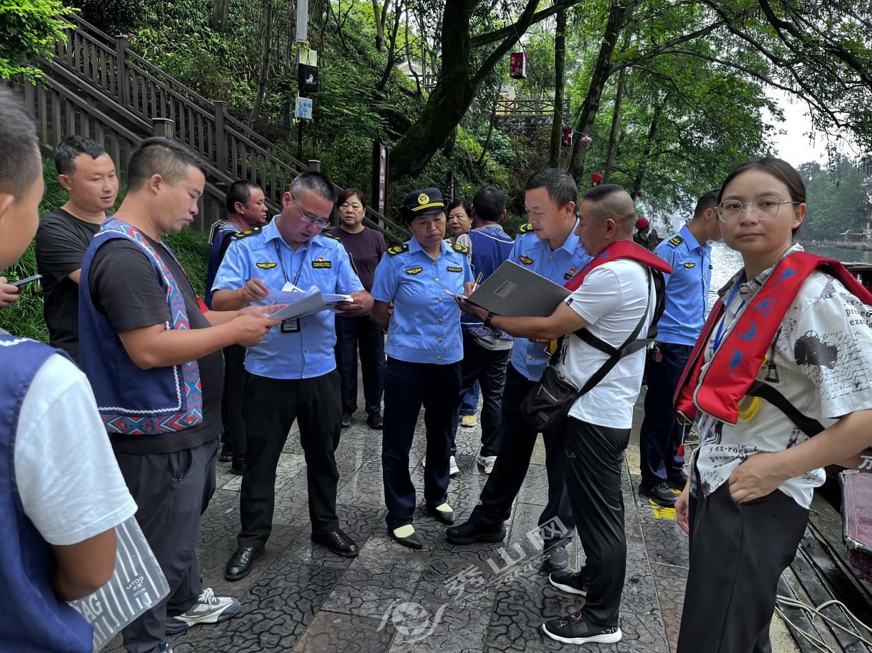 同时,执法人员结合景区特色开展精准宣传,在游船码头、“拉拉渡”候船点等游客密集区,通过发放资料、现场讲解等方式,向船工与游客普及水上交通安全法规,提醒游客在感受“边城”魅力的同时守护自身安全。