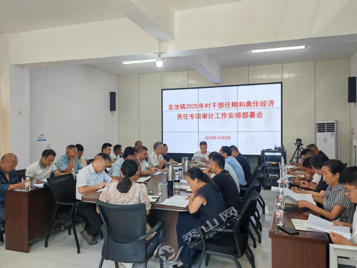 秀山网讯 10月9日,龙池镇召开2025年村(社区)“两委”班子成员任期和离任经济责任专项审计工作部署会。旨在深入贯彻落实中央、省、市、县关于加强农村基层治理和集体“三资”监管的决策部署,进一步护航村(社区)“两委”平稳换届。