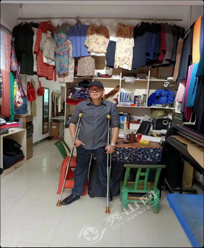“我不能成为家里的负担。”退学后,李万民到龙池镇一家裁缝店当学徒。长时间坐在缝纫机前工作,让他原本就行动不便的双腿疼痛难忍,但他从未抱怨。他珍惜这个学习机会,认真钻研每一个缝纫技巧。
