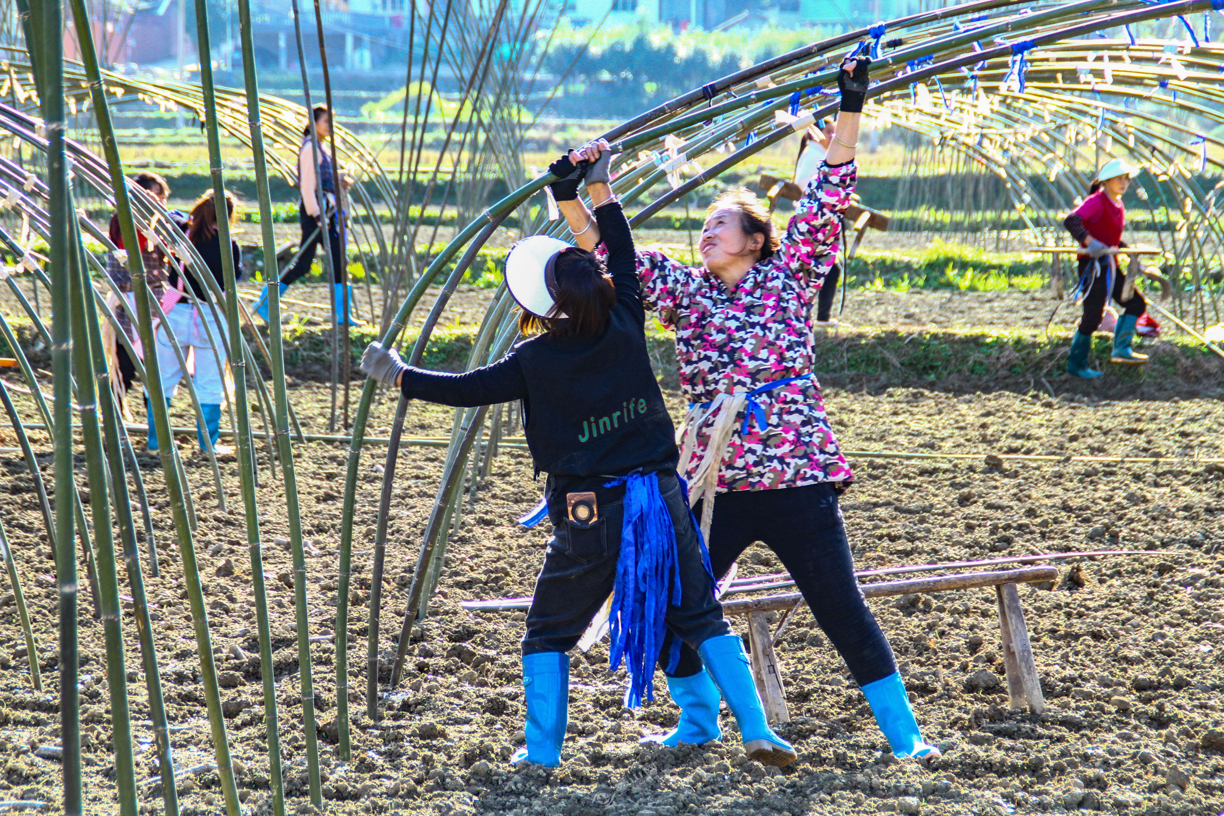 在搭建现场,58岁的村民吴胜英忙着搬运棚膜,她算了一笔账:“搭棚期间每天能挣70元,明年采摘期还能来务工,一年光在基地干活就能挣近万元。” 据了解,仅寨瓦村现有基地去年就发放劳务工资30余万元,土地流转租金每亩达400元,让“冬闲田”真正变成了“致富田”。