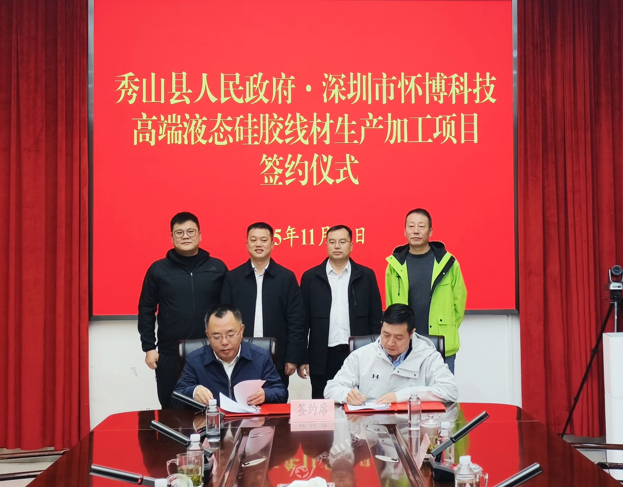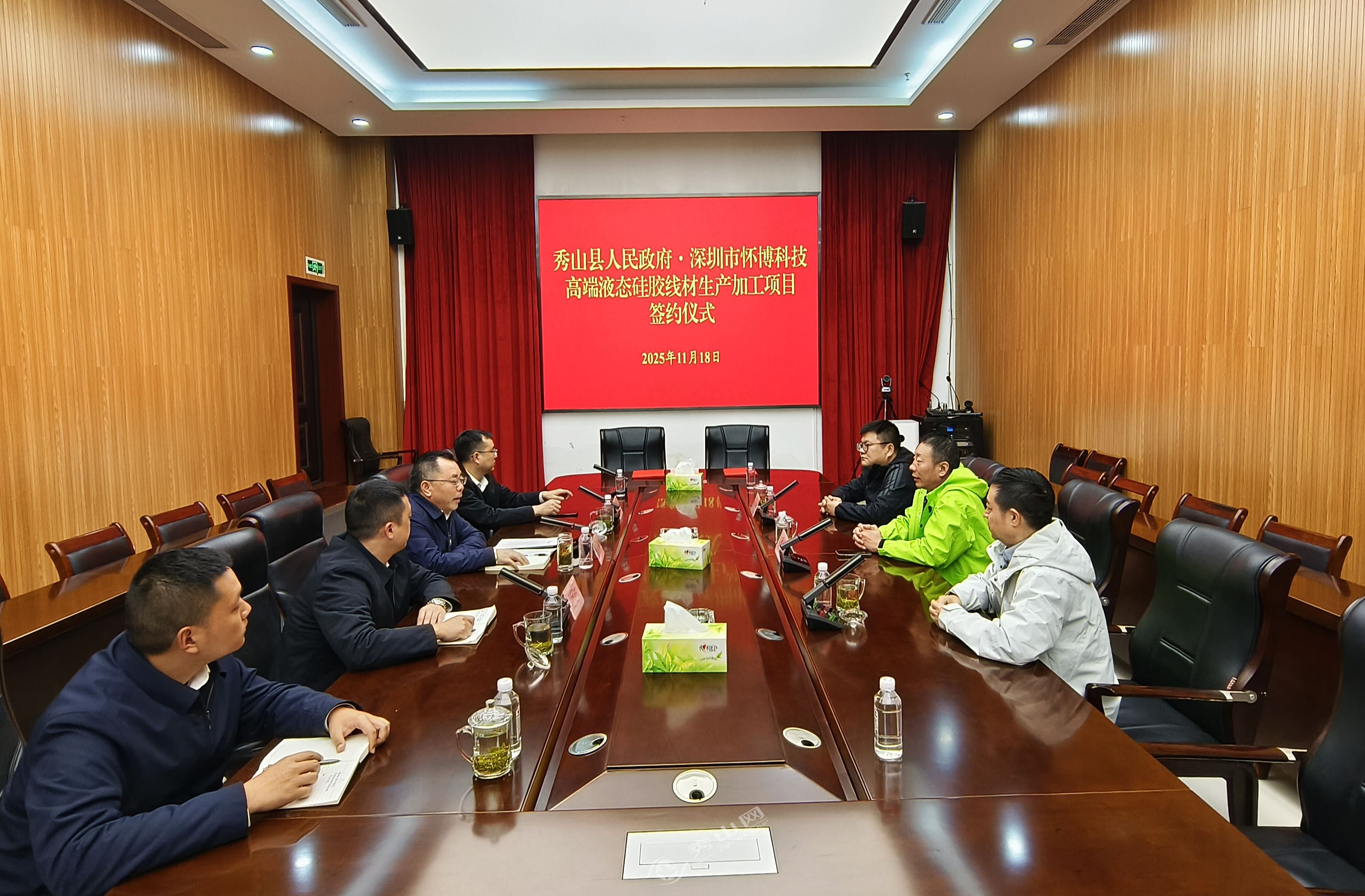 秀山网讯 11月18日下午,县人民政府与深圳市怀博科技有限公司就高端液态硅胶线材生产加工项目举行签约仪式。县委常委、县政府副县长陈宏波主持签约仪式。