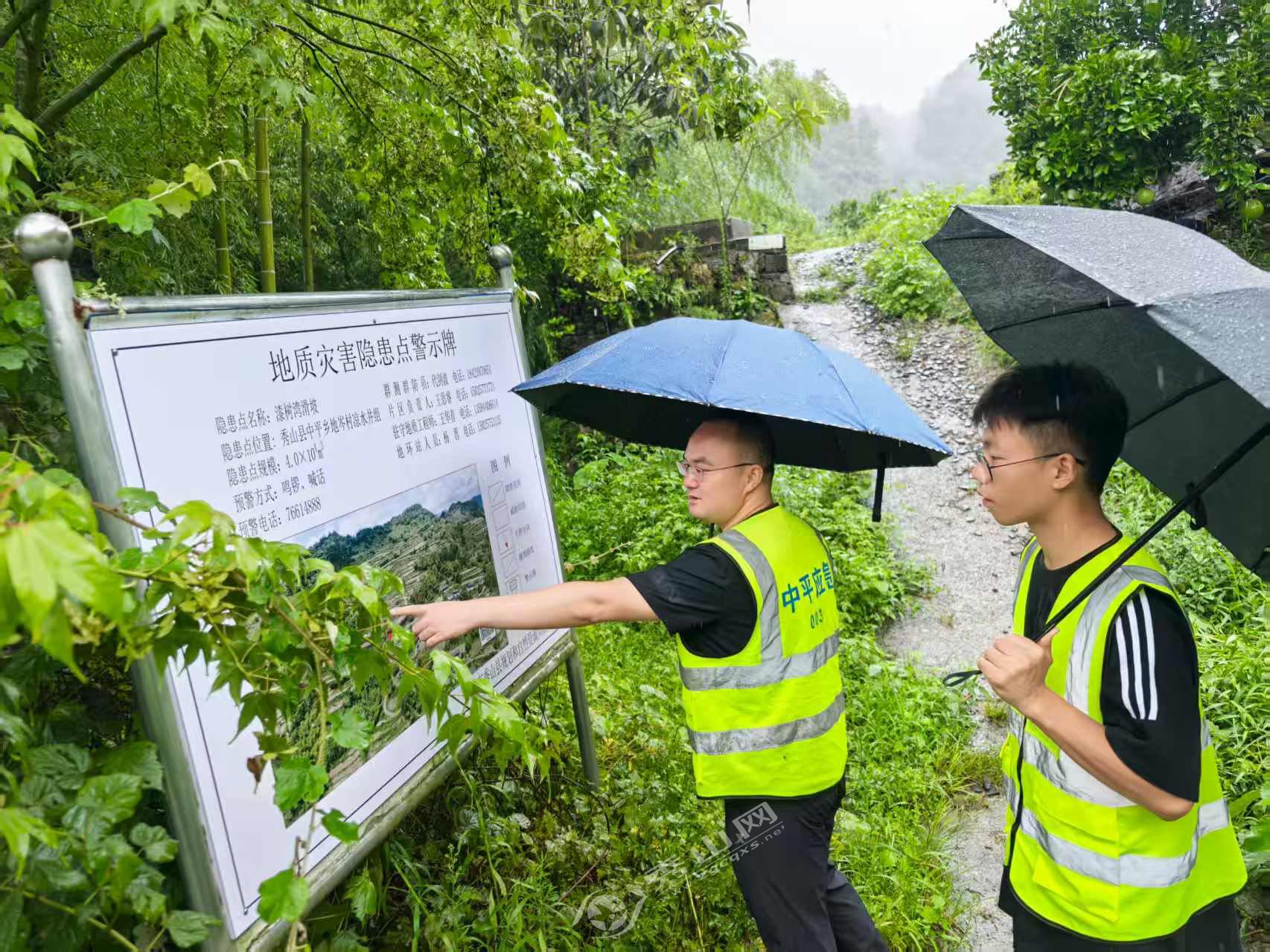 肖鑫到地质灾害点开展雨中巡查(左一)