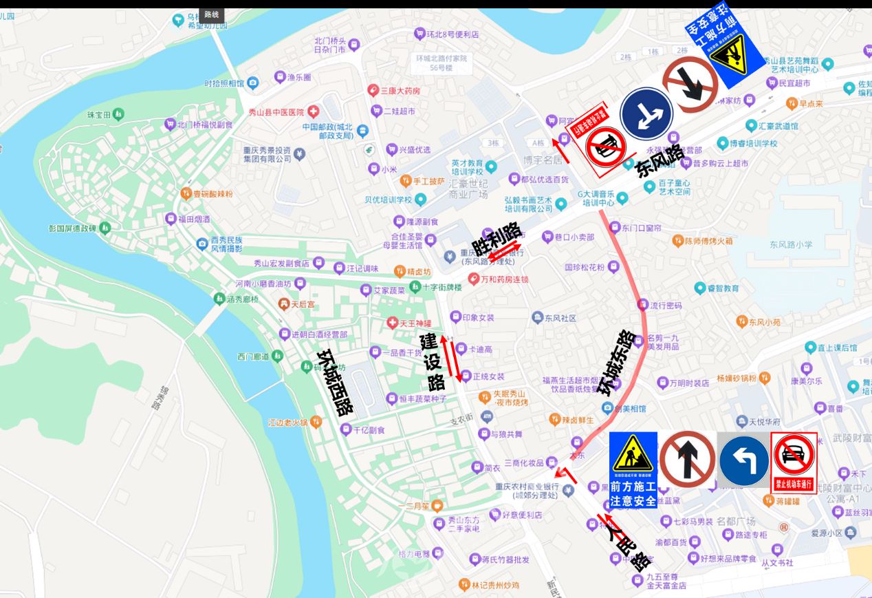 由秀山华信国有资产经营有限公司作为项目业主实施的环城北路、环城东路、环城西路雨水改造项目目前正在进行管网改造施工。为保证施工安全,有序推进项目建设,确保项目早日竣工通车,方便市民出行,县政府决定于2025年11月20日-2026年5月30日对环城北路、环城东路、环城西路进行分阶段全封闭施工。封闭期间,请广大市民朋友按交通引导方案绕行。为此带来的不便,敬请谅解。