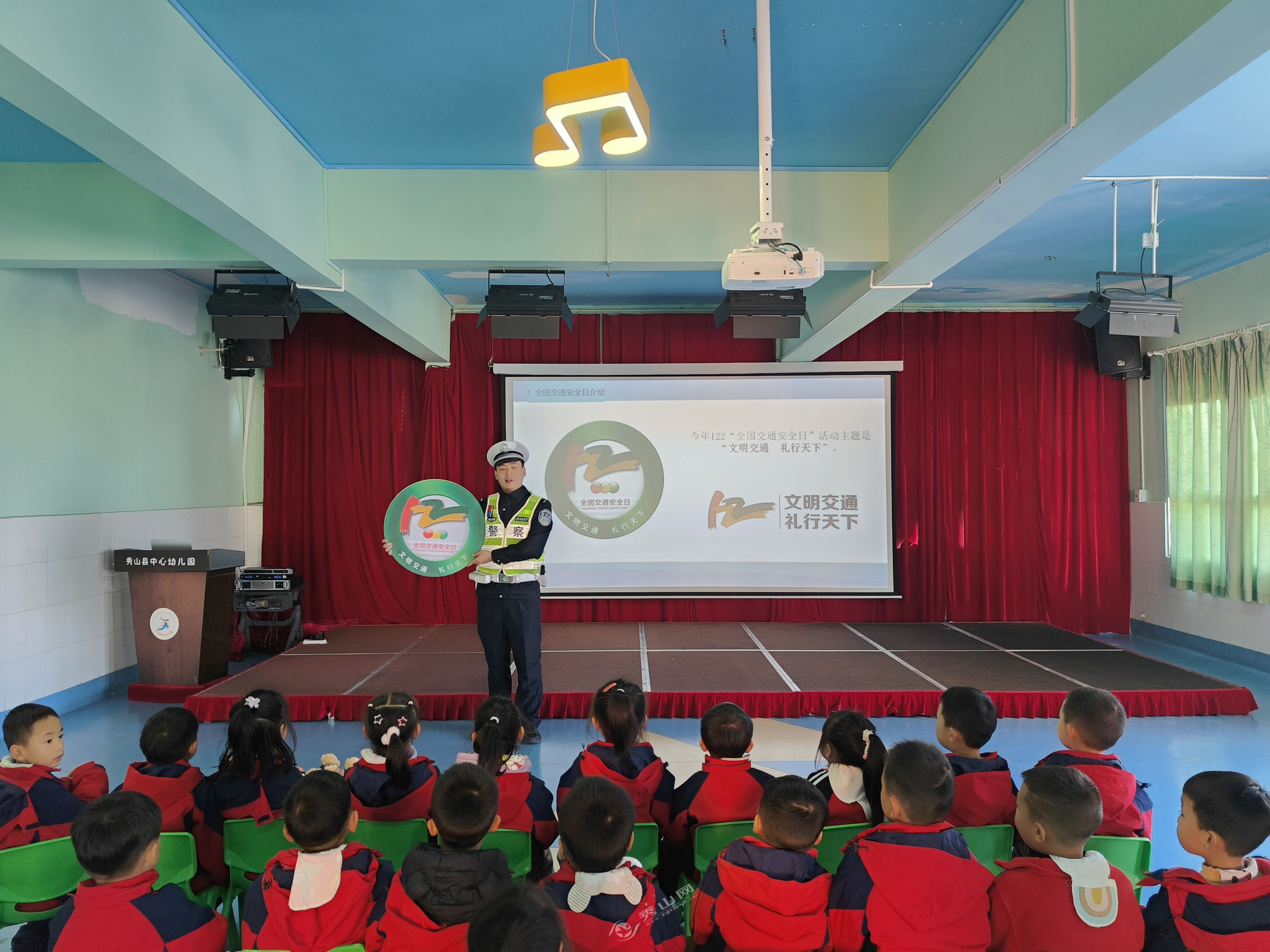 秀山网讯 11月28日上午,县公安局交巡警大队联合高速交警三支队秀山大队,共同走进秀山中心幼儿园,开展了一场生动有趣、寓教于乐的“文明交通 礼行天下”交通安全主题活动,切实增强幼儿交通安全意识,提升自我保护能力。