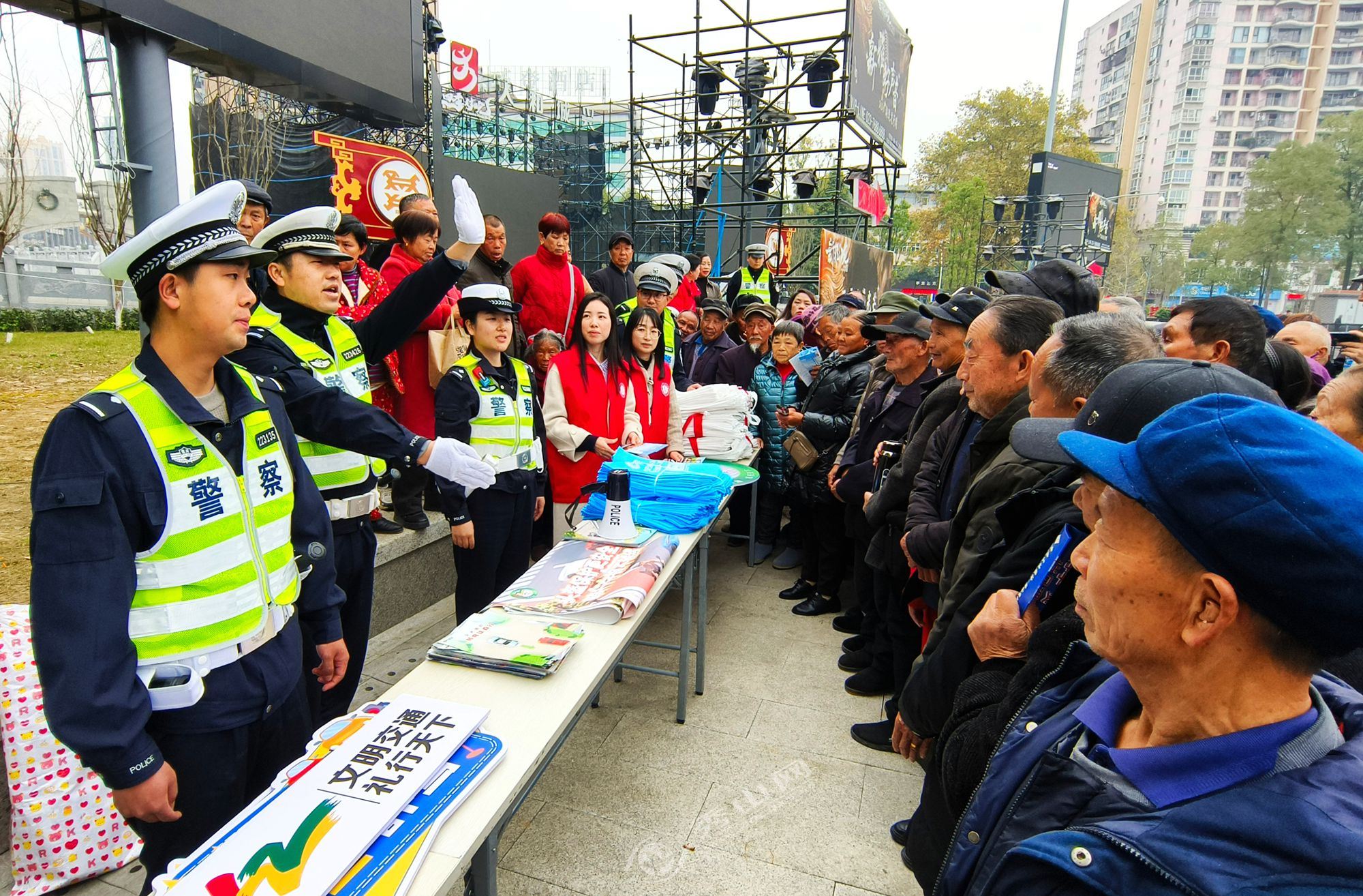 工作人员通过发放宣传手册、现场讲解交通安全知识、示范标准交通指挥手势等方式,引导群众安全文明出行。此外,活动还设置了“一问一答”互动环节,并赠送交通安全主题环保袋,帮助群众在轻松氛围中巩固交通安全知识。