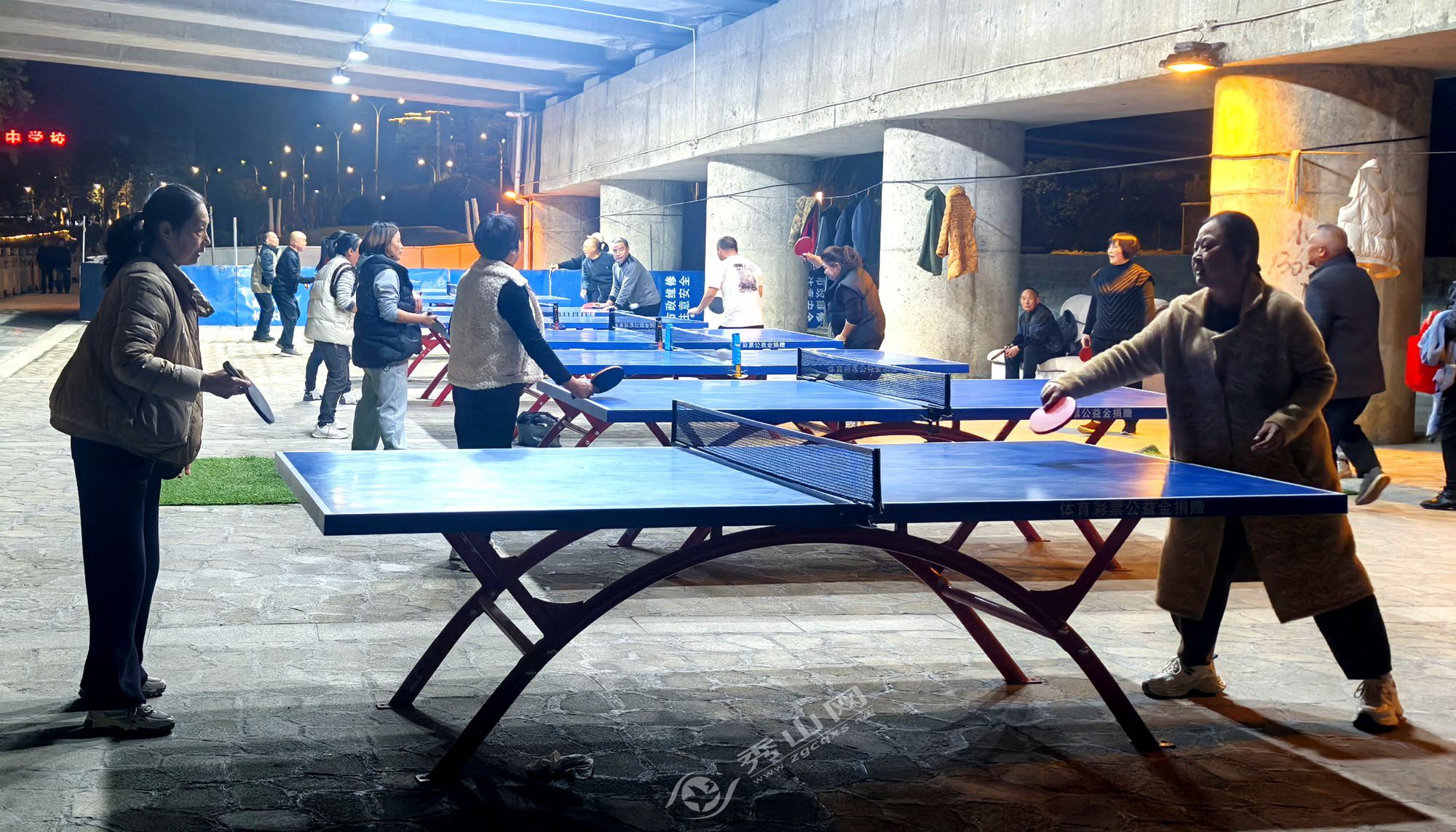 秀山网讯 每当夜幕降临,乌杨街道渝秀大桥下的乒乓球场都会亮起灯光,居民们挥拍击球、笑声不断。这片曾闲置的桥下空间,如今已成为社区最热闹的民生打卡点。“新球场建得不错,每天和邻居们打几局,日子越过越有滋味!”居民杨大爷的感慨,道出了乌杨街道深化“双网格”治理机制带来的民生温度。