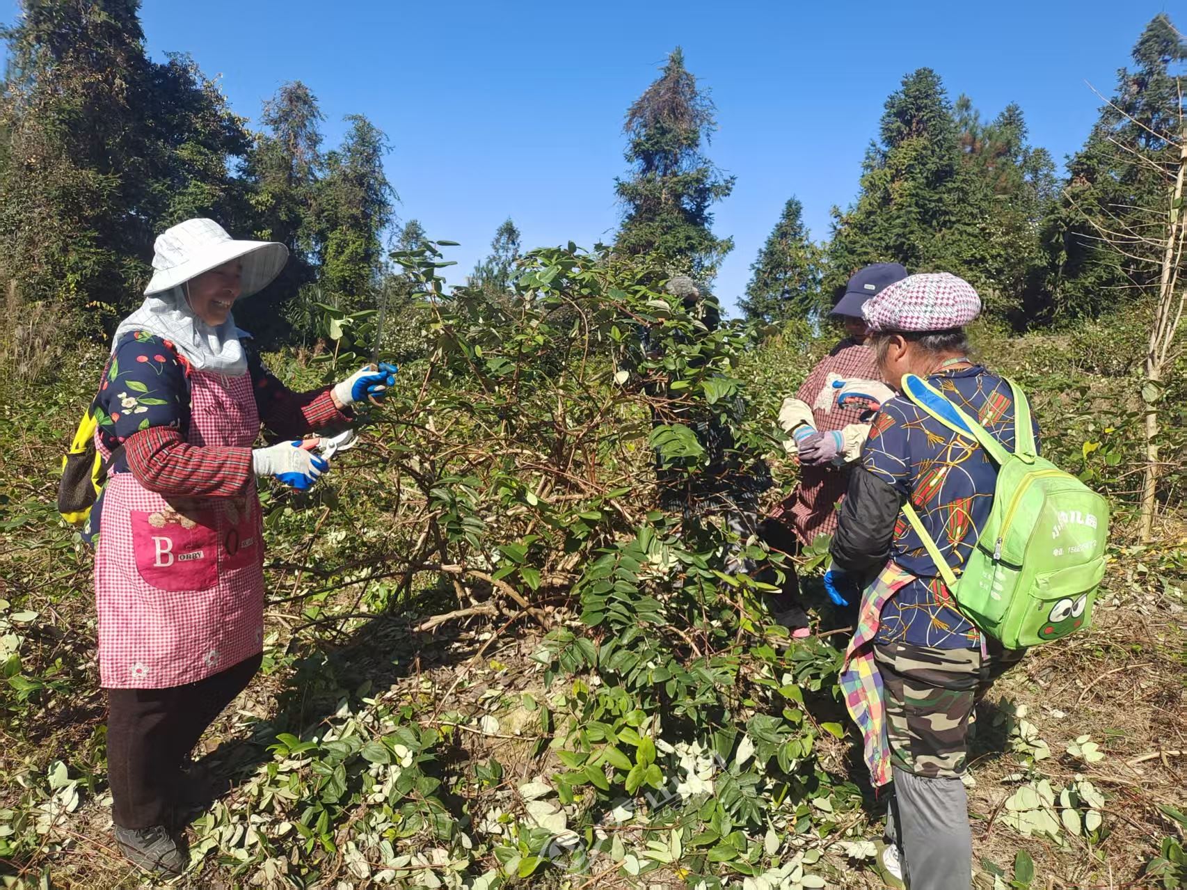 这段时间,中平乡组织农技专家、驻村工作队和村干部成立冬季管护指导专班,分赴茶园村、贵落村等山银花种植核心区,深入田间地头开展“把脉问诊”。针对冬季山银花枝条徒长、养分消耗大等问题,技术人员现场示范整形修剪技术,指导农户精准剪除病弱枝、交叉枝和重叠枝,保留健壮结果母枝,并讲解修剪后伤口防护要领。围绕病虫害越冬防控,专班推广石硫合剂喷洒、清园除草、土壤翻耕等绿色防治措施,降低来年病虫害发生基数;在基肥施用方面,强调以腐熟农家肥和有机肥为主,科学配施磷钾肥,促进山银花根系生长与养分储备。