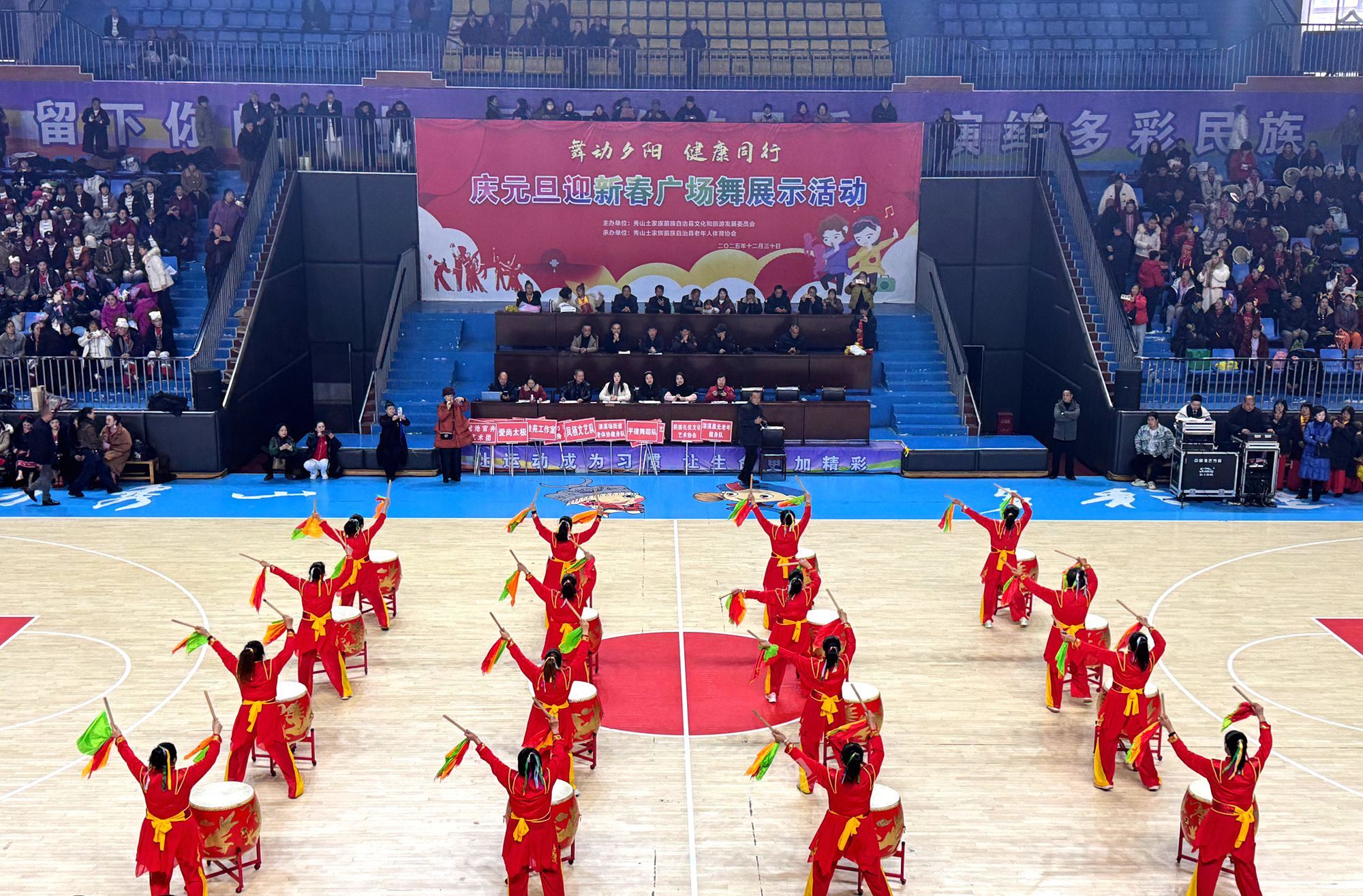 秀山网讯 为欢庆元旦节、迎接新年,展现我县老年人昂扬向上的精神风貌与健康活力,12月30日上午,由县文化旅游委主办、县老年人体育协会承办的“舞动夕阳 健康同行”庆元旦迎新春广场舞展示活动,在县体育馆举行。