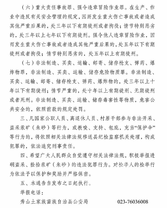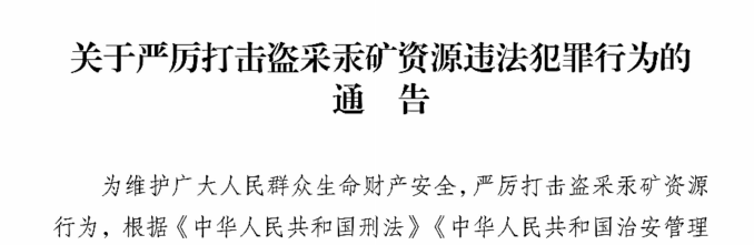 关于严厉打击盗采汞矿资源违法犯罪行为的通告