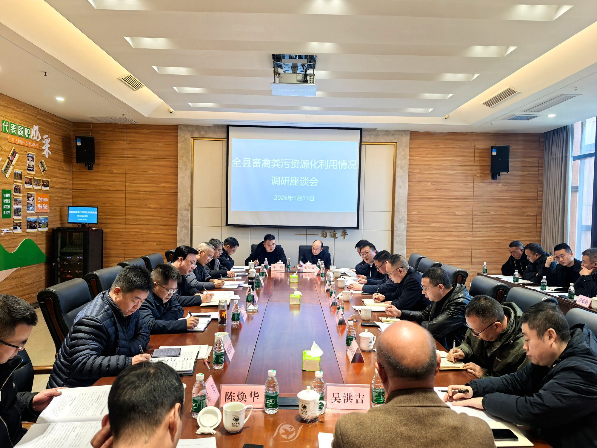 秀山网讯 1月13日上午,县人大常委会组织召开畜禽粪污资源化利用情况专题调研座谈会,深入贯彻绿色发展理念,破解畜禽养殖污染难题,探索资源化利用有效路径,推动畜牧业与特色农业协同健康发展。县人大常委会主任任强、副主任向照勇,县政府副县长陈茂参加调研及座谈。