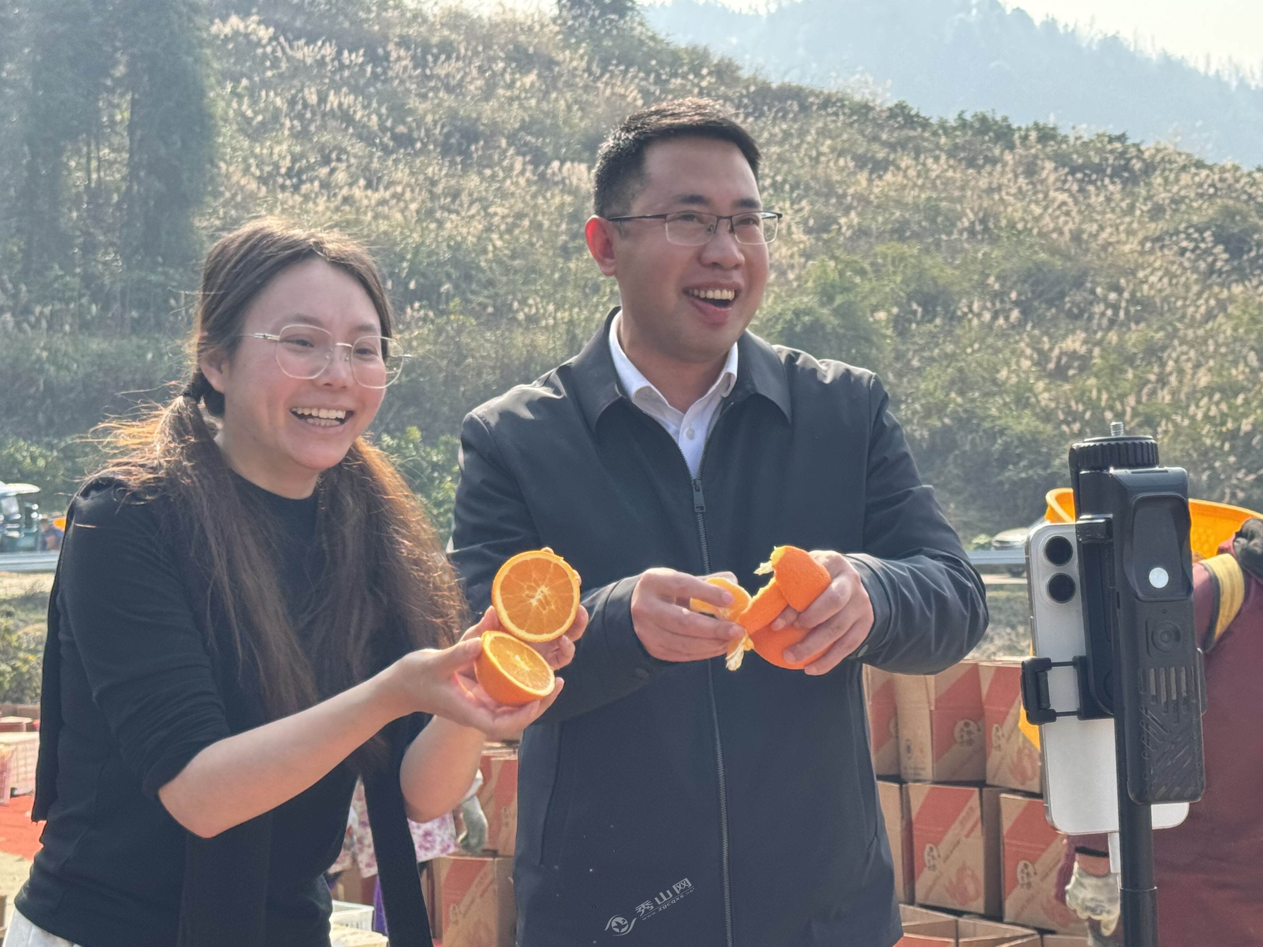 秀山网讯 时下,雅江镇麻雀坡家庭农场呈现一派繁忙景象。400多亩柑橘园里金黄果实挂满枝头,在冬日阳光下格外喜人。与往年不同的是,今年的果园里除了采摘的忙碌,还多了直播的声音和线上订单的喜悦。