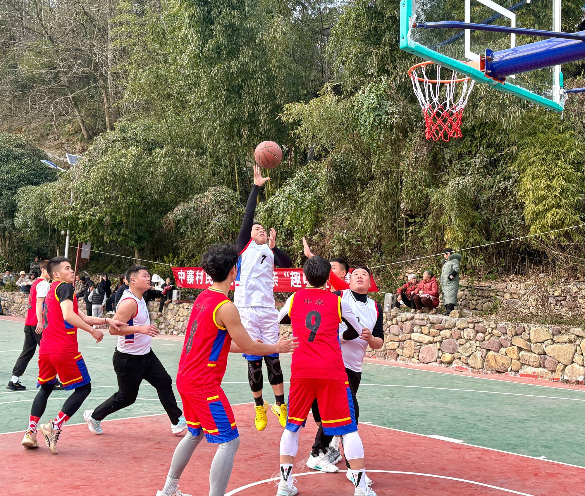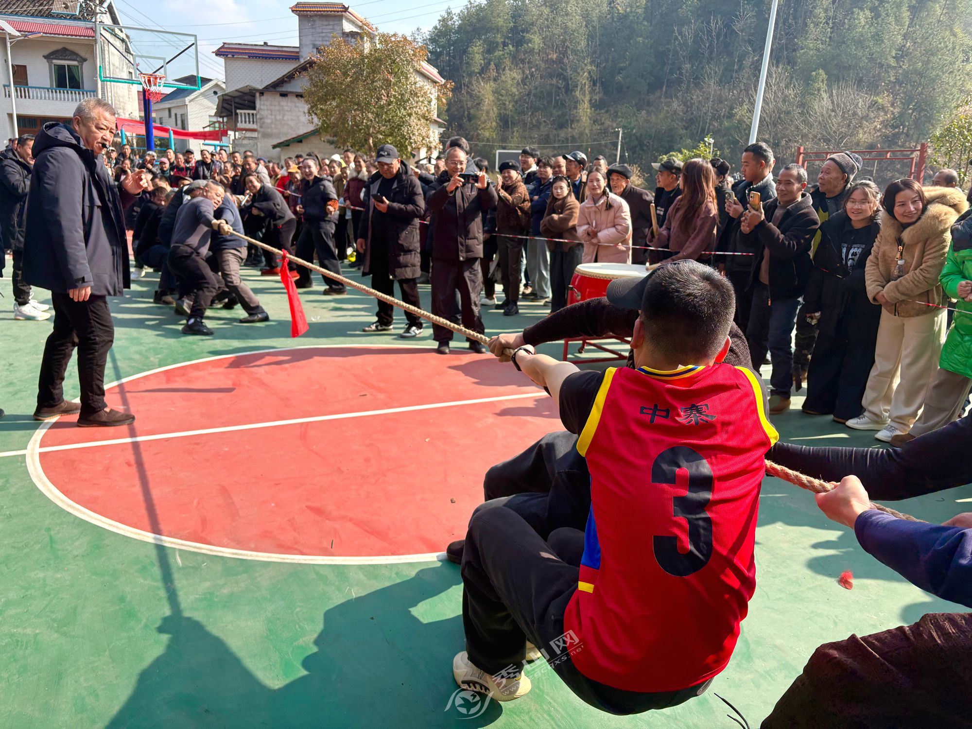 活动在村篮球场拉开序幕。首先进行的是力量与协作并重的拔河比赛,各村民小组及特邀村组队伍轮番上阵,加油声、呐喊声此起彼伏。紧接着,篮球友谊赛火热开赛,中平乡茶园村代表队与中寨村联队展开激烈对决,精彩攻防引得观众阵阵喝彩。