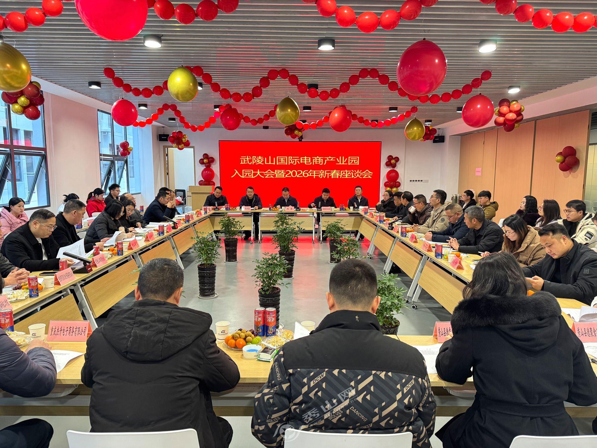 秀山网讯 1月30日上午,武陵山(秀山)国际电商产业园入园大会暨2026年新春座谈会召开。县政府副县长刘炼出席会议并讲话,相关单位负责人、武陵山网商协会代表及签约入驻企业负责人齐聚一堂,共叙合作情谊、共话电商产业发展新机遇。