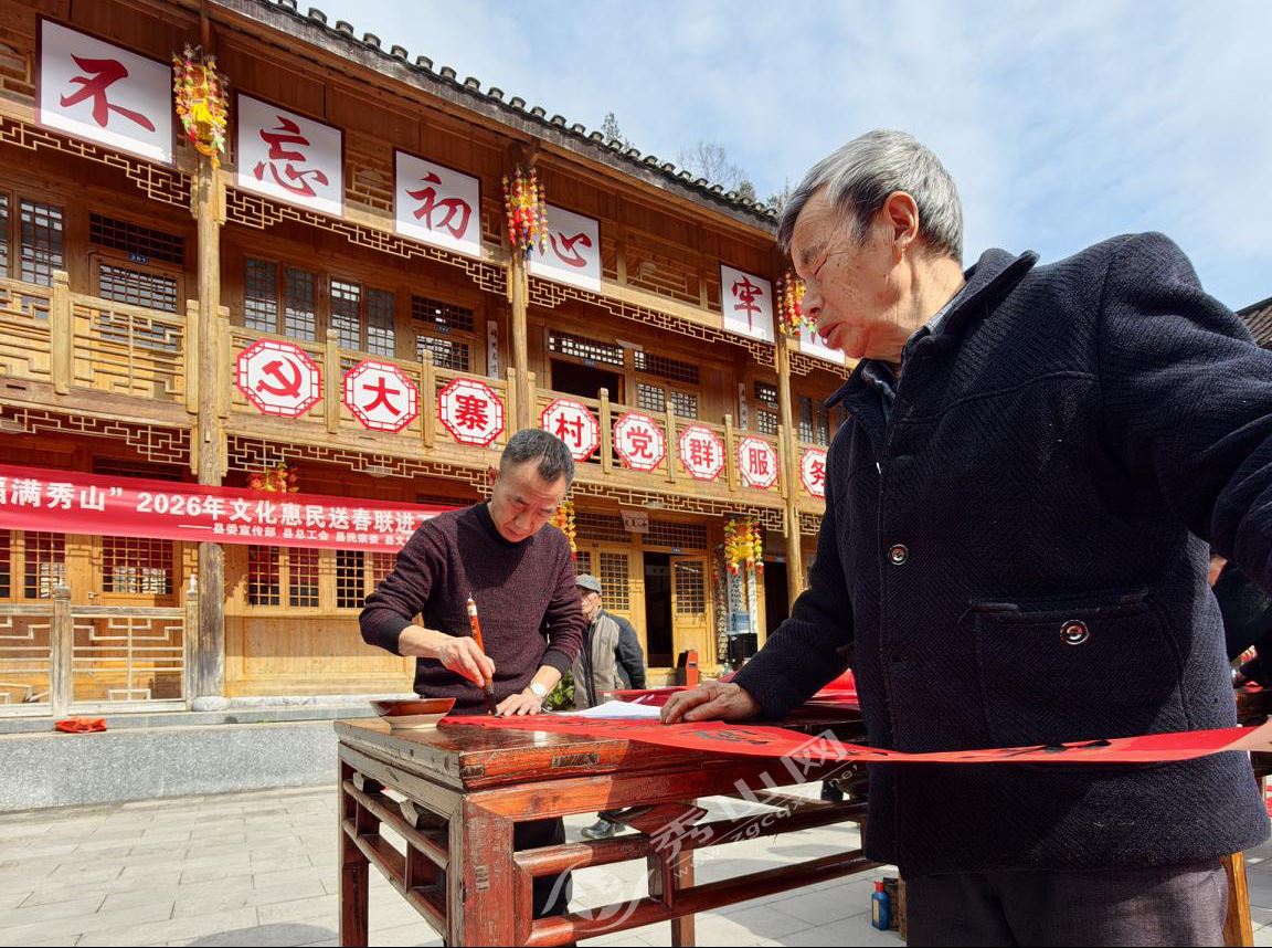 秀山网讯 近日,由秀山县委宣传部、县文学艺术界联合会联合主办的“中国书法之乡 书写和美边城”文明实践送春联活动,在秀山掀起一场文化惠民热潮,数名书法家分赴在街道社区、乡镇农村、企业园区等人流密集场所,以笔墨传情的方式为广大群众送上新春美好祝福。