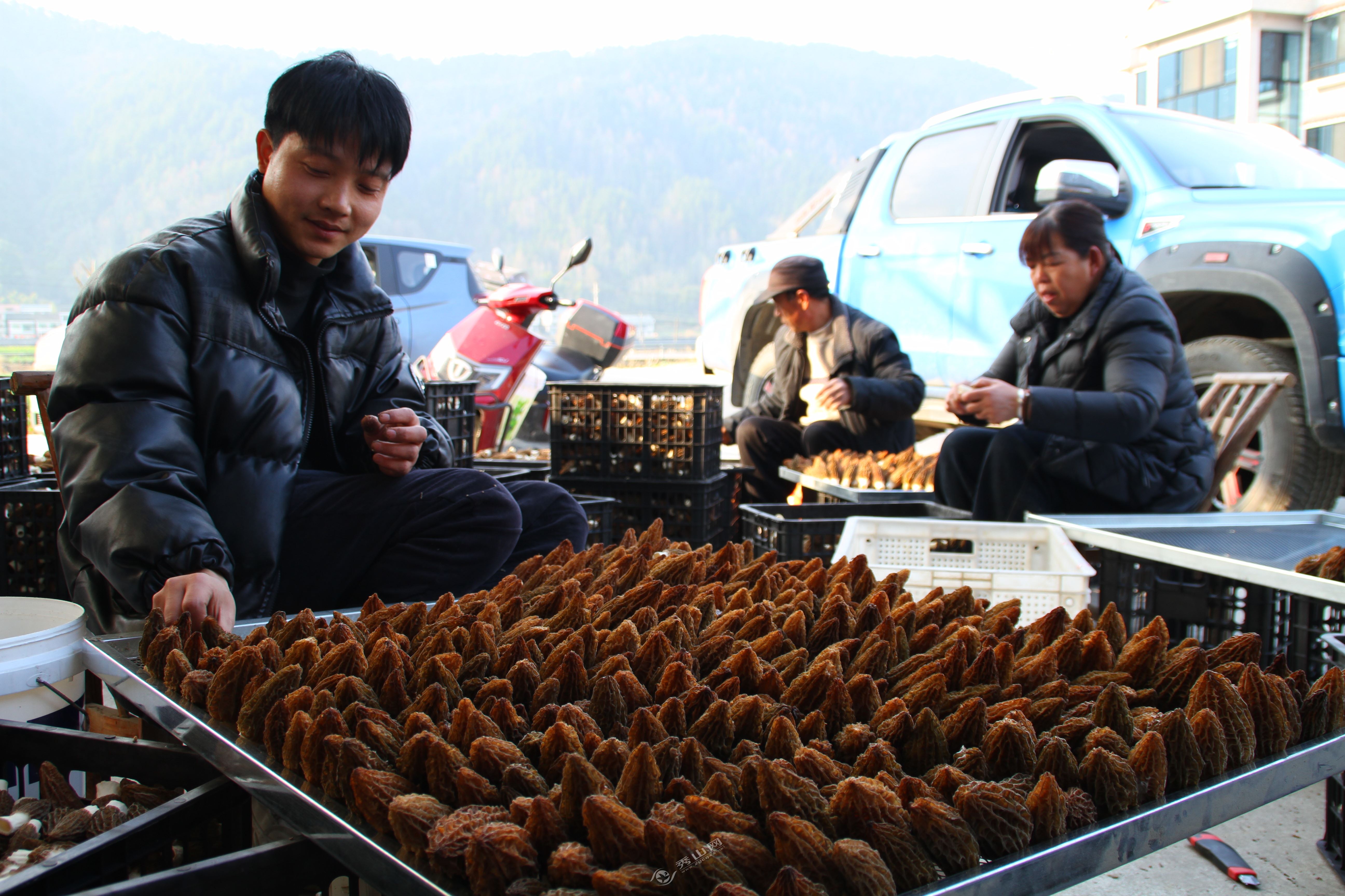 为了不错过农时,王军没时间与家人团聚,正忙着组织工人分工协作,挑选、分拣、烘干,一派繁忙的丰收景象,标志着兰桥镇今年首批羊肚菌正式抢“鲜”上市,端上消费者春节的餐桌。
