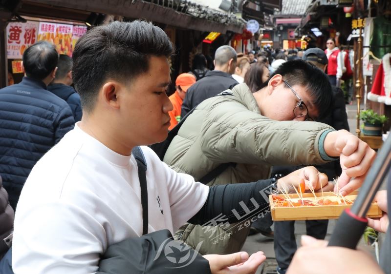 “中国和越南在文化方面有很多相似的地方,但是这样沉浸式感受中国年味还是第一次。”越南游客郑清恒告诉记者,漫步在磁器口古镇,蒸熟的腊味、热气腾腾的糍粑、新鲜出锅的麻花还有淌着热油的麻辣烫,从各式各样的小吃都可以感受到浓厚的节日氛围。“我在网上做了攻略,老街打卡完之后我还要去更加时尚的后街,去看看那里的山海经和大鱼海棠主题灯饰,想感受一下那种流光溢彩的浪漫,留下美好的春节回忆。”郑清恒表示。