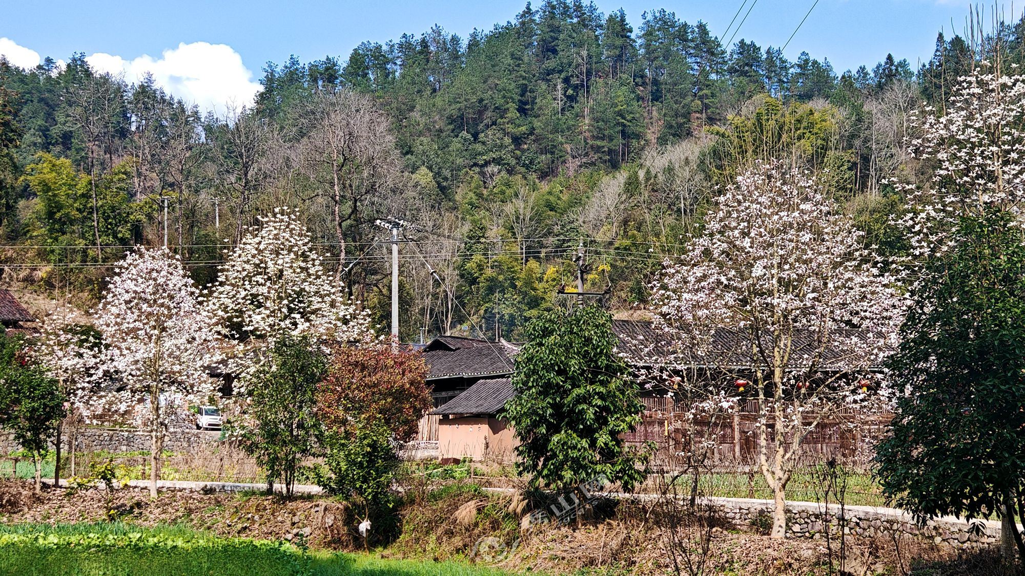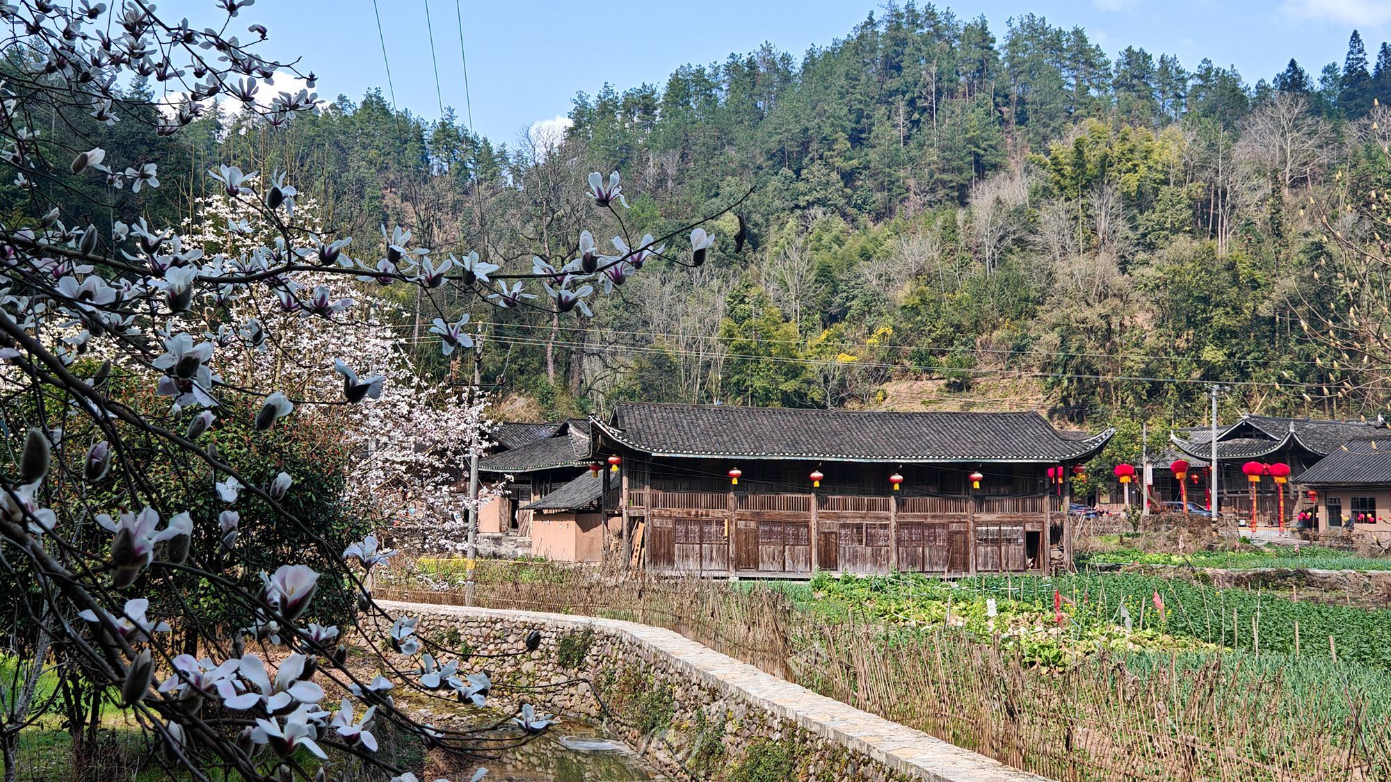 花映古寨美,春归山水间。玉兰又名望春,是春天到来的重要信号之一。与其他同时节的花卉不同,它是先开花后长叶,在光秃秃的枝条上绽放出大而白的花朵。受气温回暖影响,今年田家沟组的玉兰花期较往年略早一些。硕大的花朵傲然挺立,肆意盛开,淡雅的清香随风飘散,勾勒出一幅优美的春日画卷。