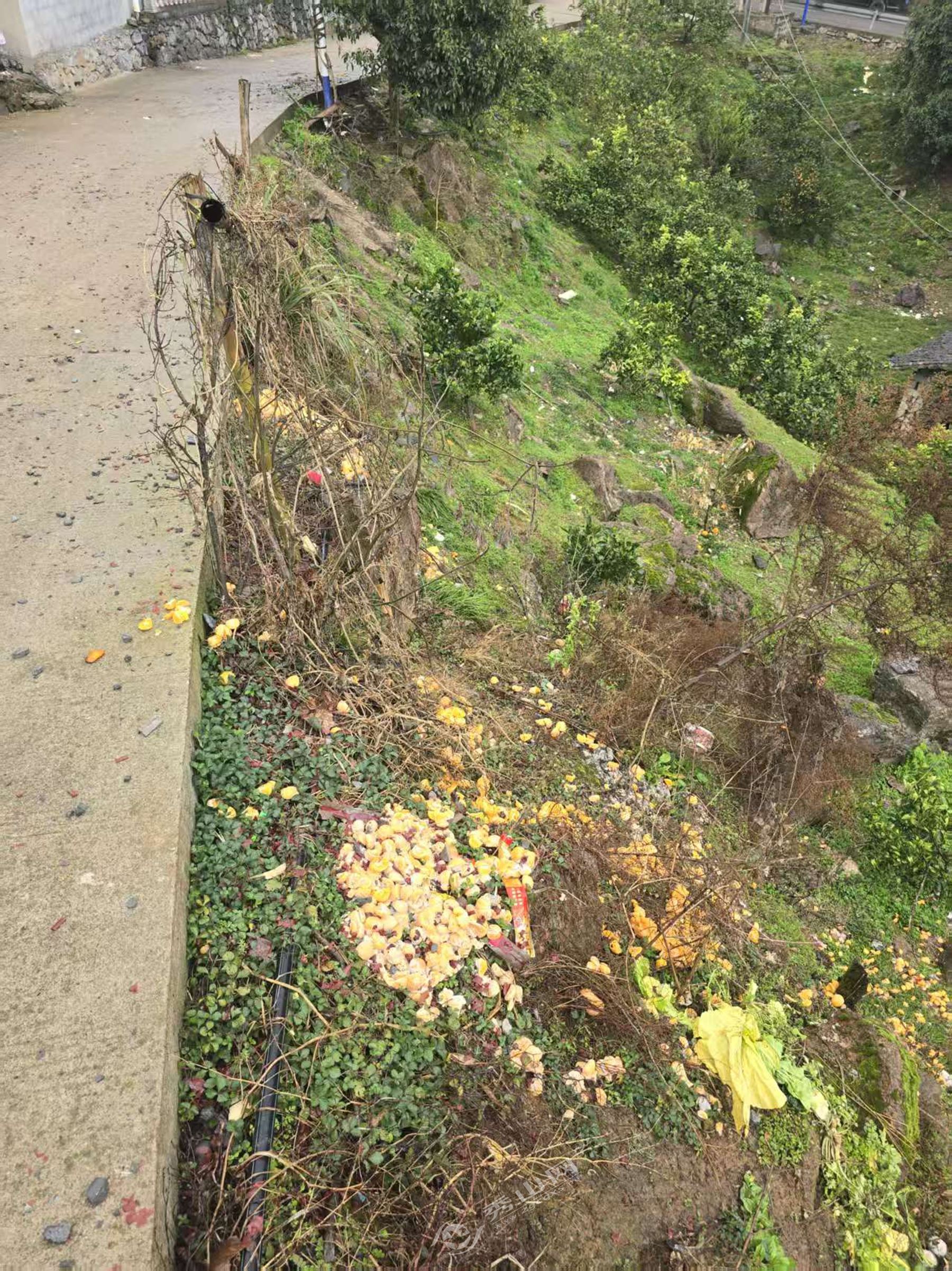 在石堤镇辖区,大龙村存在垃圾清运不及时问题,部分生活垃圾堆积于垃圾箱外侧,未能及时清理转运,不仅影响周边环境整洁度,还易滋生蚊虫、散发异味,影响群众日常生活;水坝村路边坡下可见柑橘及生活垃圾随意丢弃,既破坏村容村貌整体观感,也违背环境卫生整治要求;板栗村同样存在类似问题,部分村民未按规定将生活垃圾投放至指定垃圾收集设施,随意丢弃在路边坡下,影响区域环境整洁。