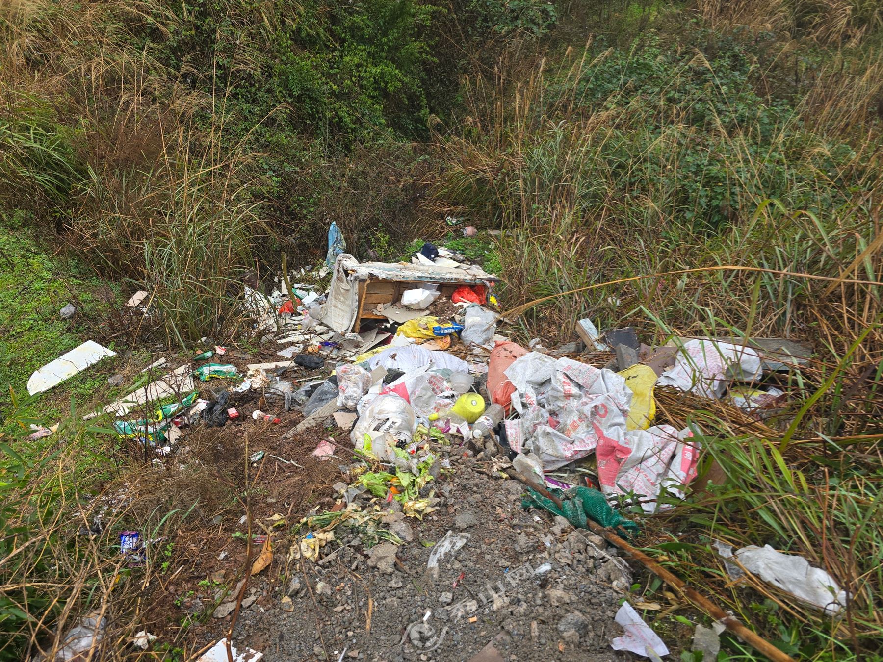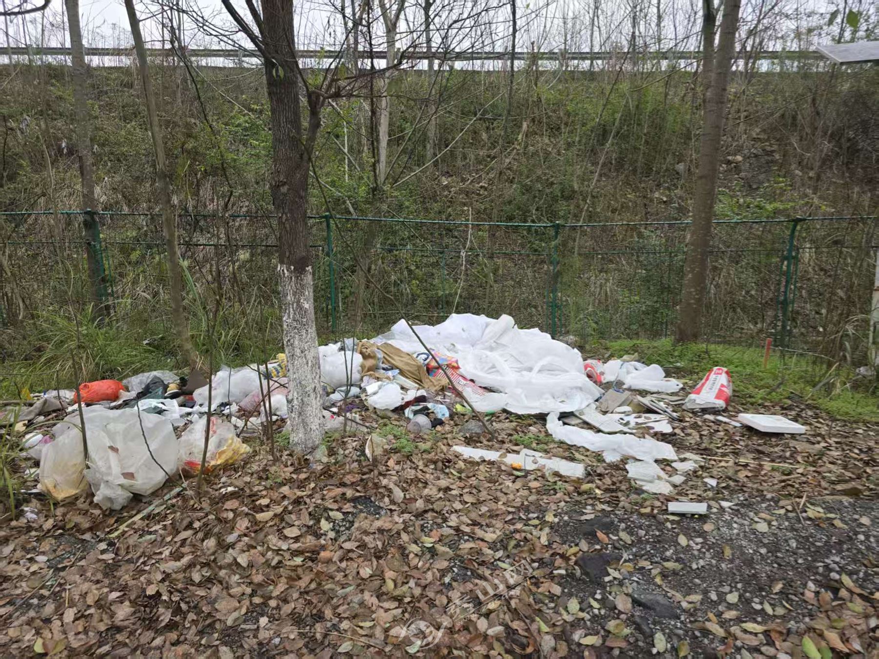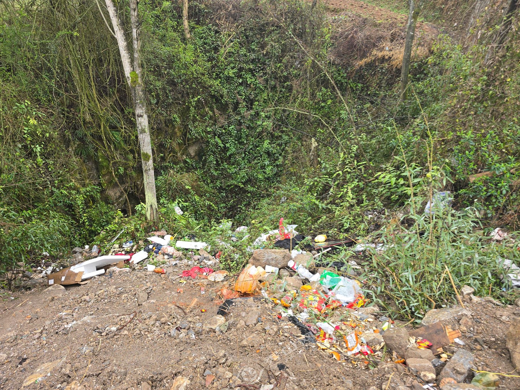 在里仁镇的里仁居委会往老鹰村方向的路边,发现有群众将生活垃圾直接倾倒在路边坡下,形成明显垃圾堆积点,不仅影响村庄整体风貌,还可能对周边土壤造成潜在污染,不利于人居环境持续改善。
