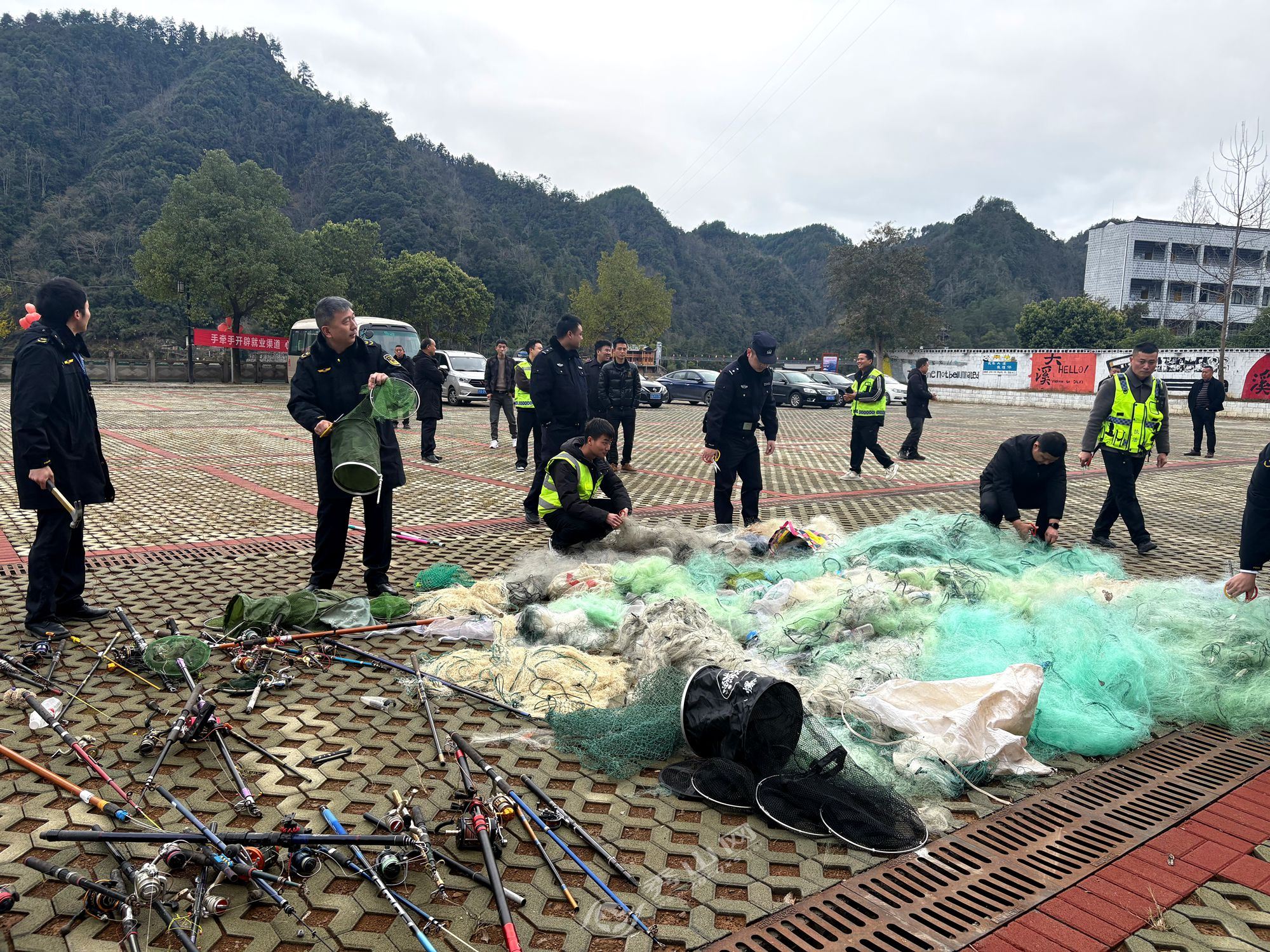 上午10时,专项联合执法行动启动仪式在大溪码头广场举行,这也标志着秀山县2026年禁钓期(3月1日—6月30日)常态化执法巡查工作正式拉开序幕。启动仪式现场,执法人员集中销毁了一批违规禁用渔具。