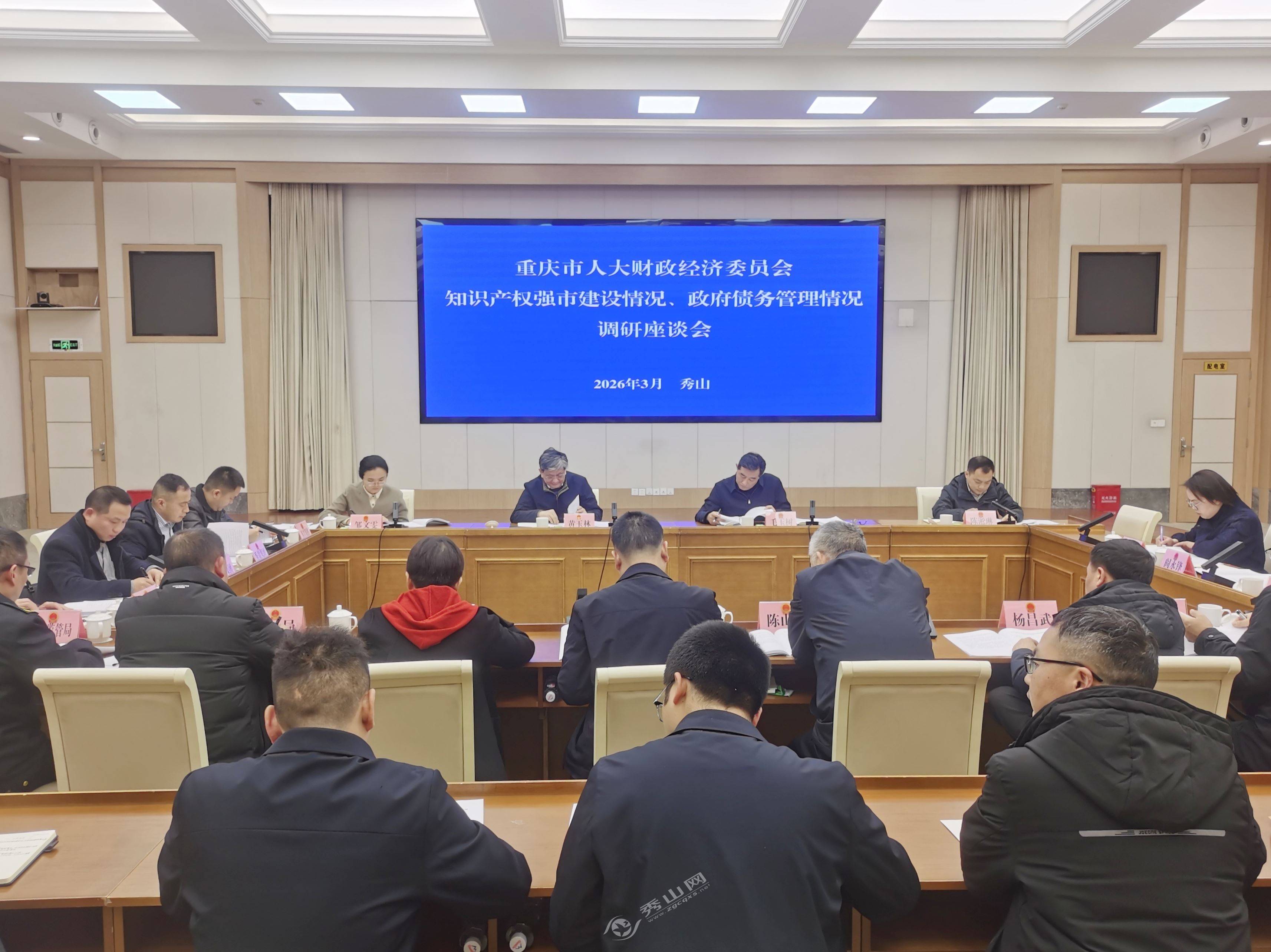 秀山网讯 3月9日,市人大财经委主任委员黄玉林率调研组来秀,就知识产权强市建设、政府债务管理等工作开展专题调研。县人大常委会副主任陈山鹰、县政府副县长刘炼参加座谈会。