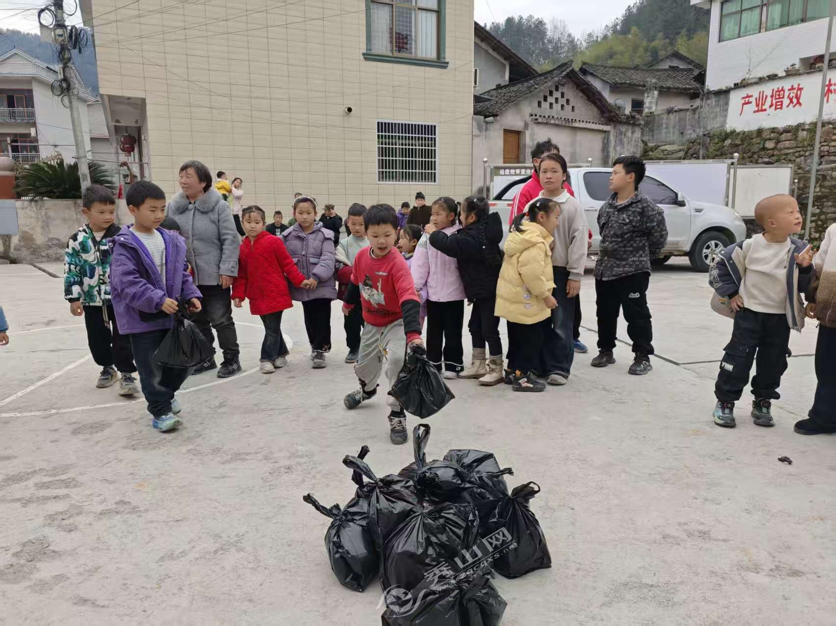 随后,孩子们化身“乡村环保小卫士”,戴着手套、拿起扫帚、提着垃圾袋,整齐走进村巷开展清洁志愿行动。一个个小小身影穿梭忙碌,捡纸屑、扫落叶、劝导垃圾分类。“我要把村子变漂亮!”的质朴话语,更是让雷锋精神从课本文字变成了实实在在的暖心行动。