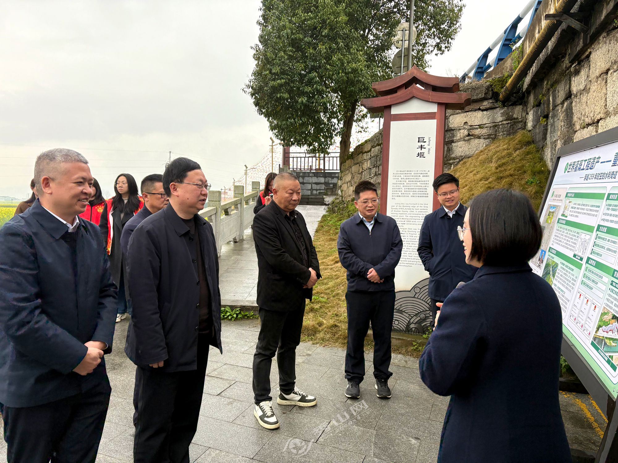 活动伊始,与会领导与联合执法巡查组前往巨丰堰渠首,实地察看工程本体及周边环境,深入了解世界灌溉工程遗产——重庆秀山巨丰堰的历史价值与保护现状。随后,多单位共同开展联合巡堰。